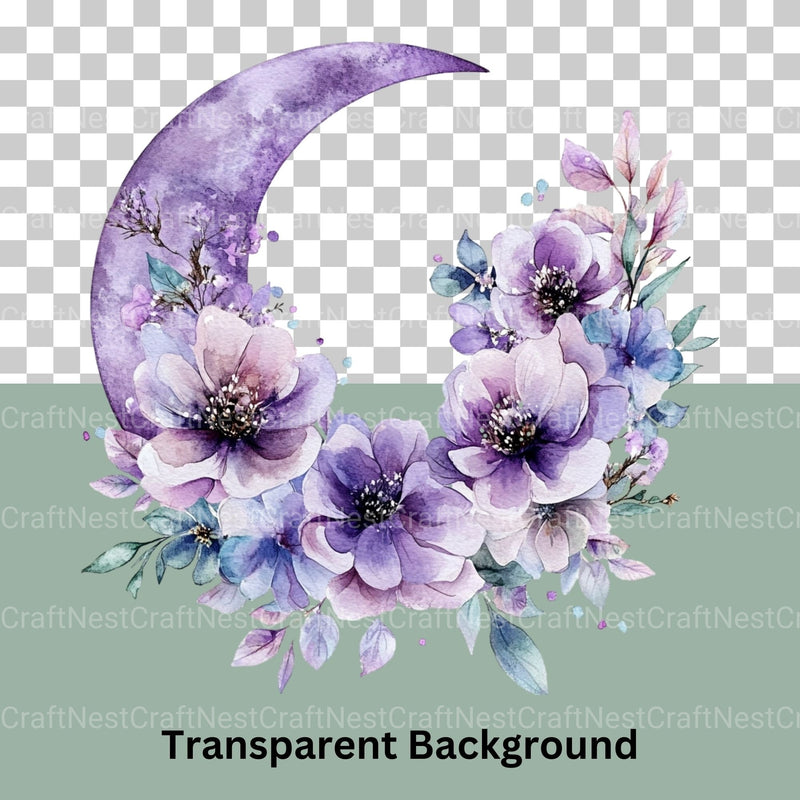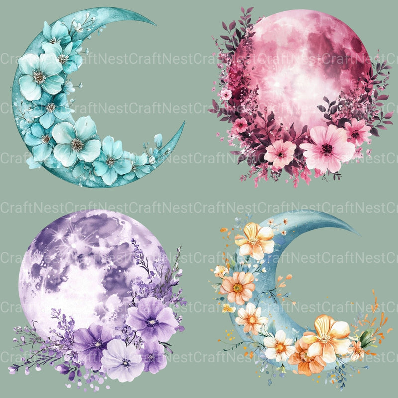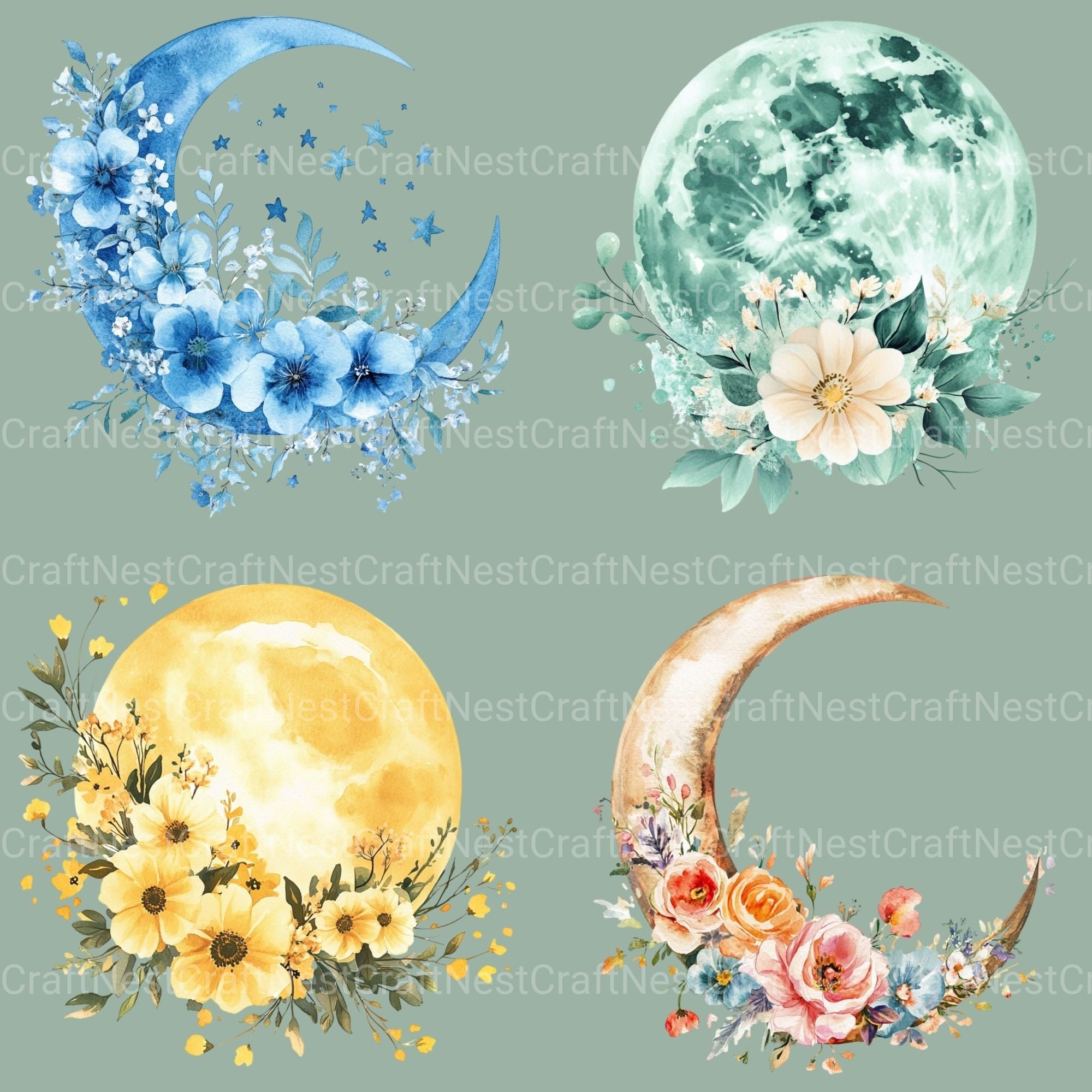 Glow with this Floral Moon 12 Clipart Bundle, featuring celestial floral moon designs, perfect for mystical flower crafts.