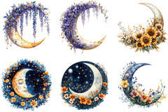 Unleash your creativity with the Floral Moon Design Clipart Bundle, featuring exquisite floral and celestial motifs perfect for enchanting art projects.