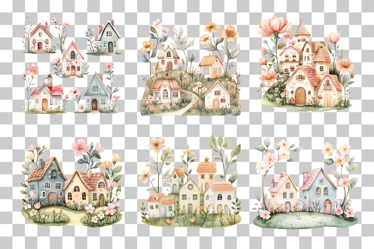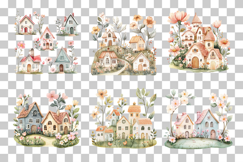 Transform your projects with the Floral Whimsical Village Cottages Clipart Bundle, featuring enchanting cottage designs perfect for creative crafts and digital art. Ideal for scrapbooking, invitations, and whimsical decor, this collection brings a touch of magic to any project. Explore a world of charm and creativity with these high-quality, versatile illustrations, designed to inspire and captivate. Perfect for artists, designers, and DIY enthusiasts looking to add a unique flair to their work.