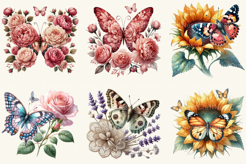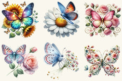 Flutter with this Flower Butterfly Clipart Bundle, featuring floral butterfly designs, perfect for garden nature crafts.