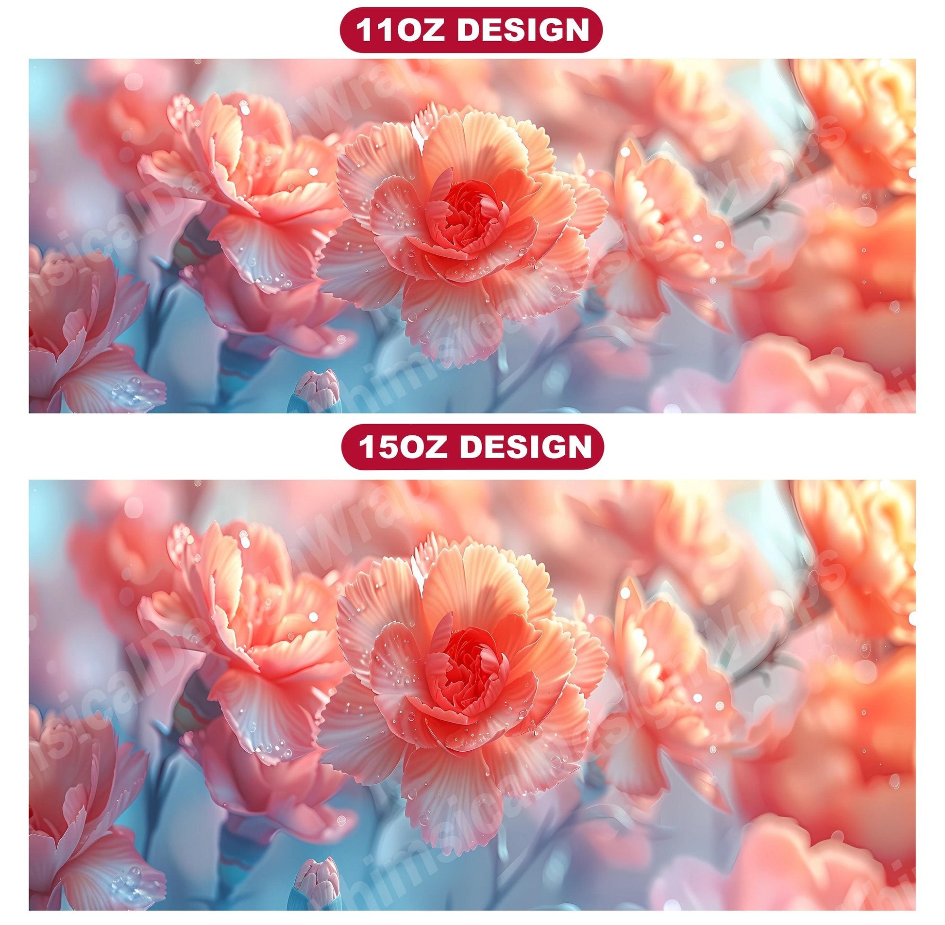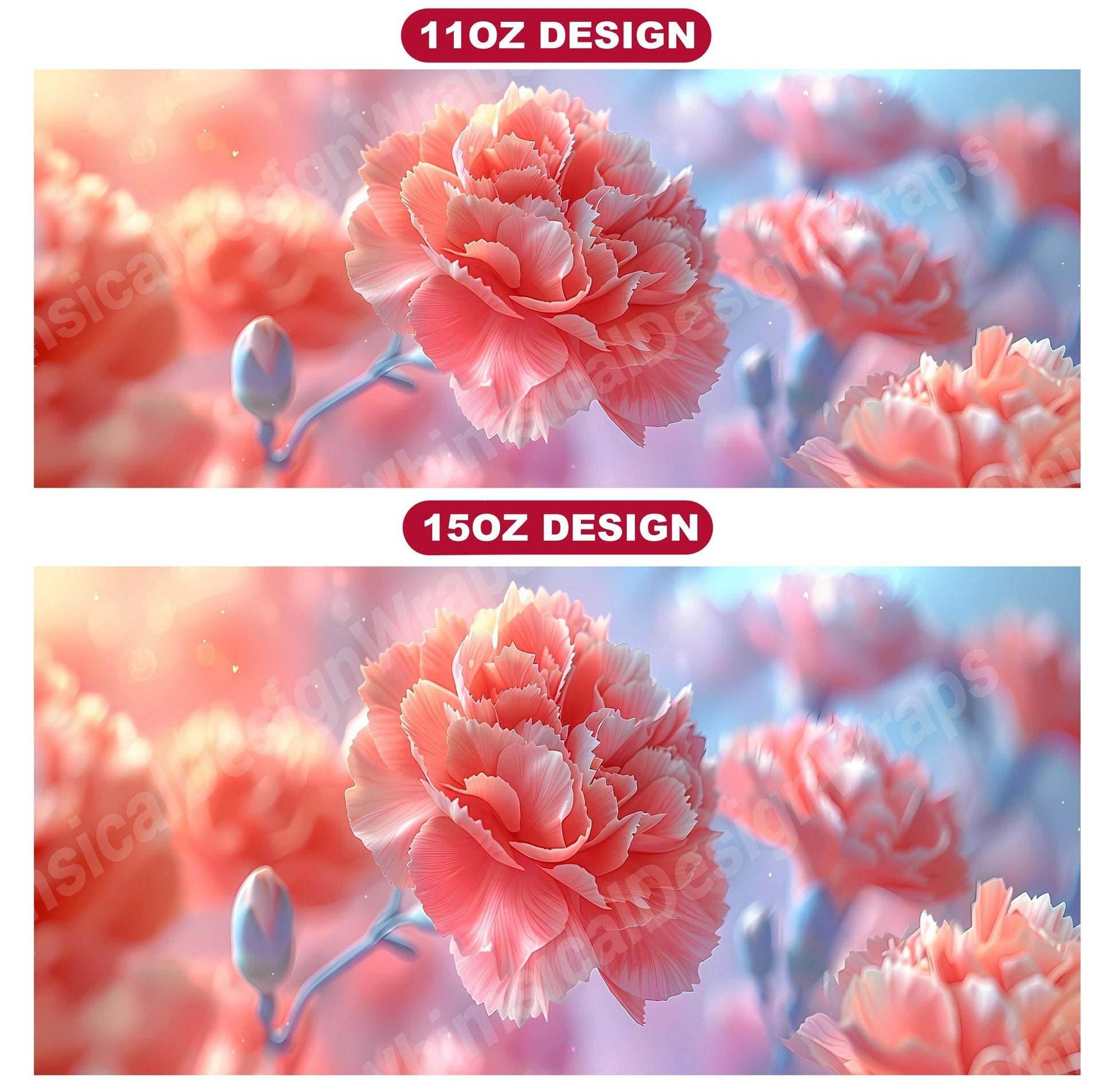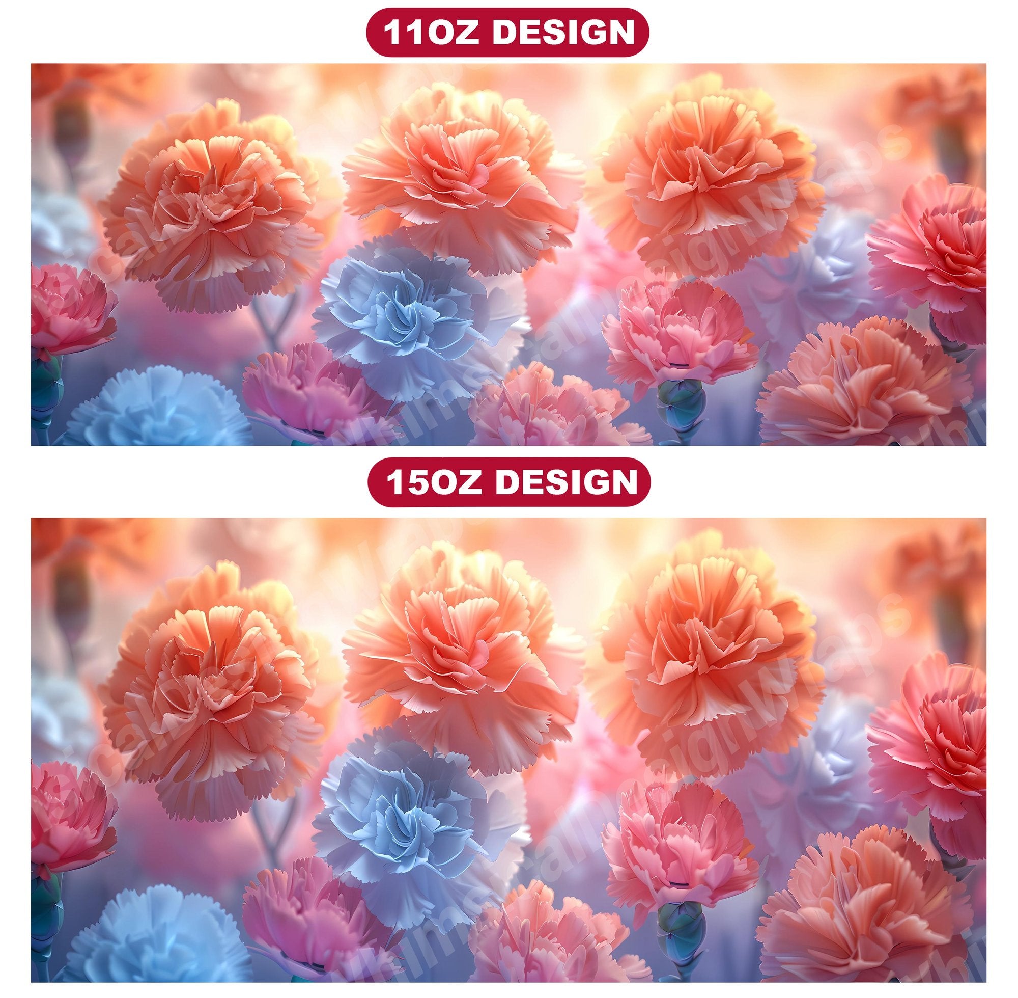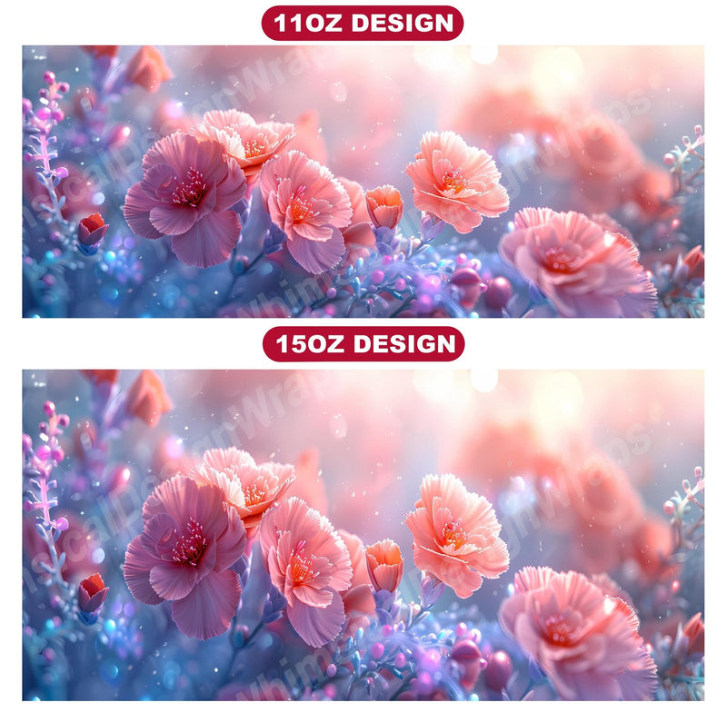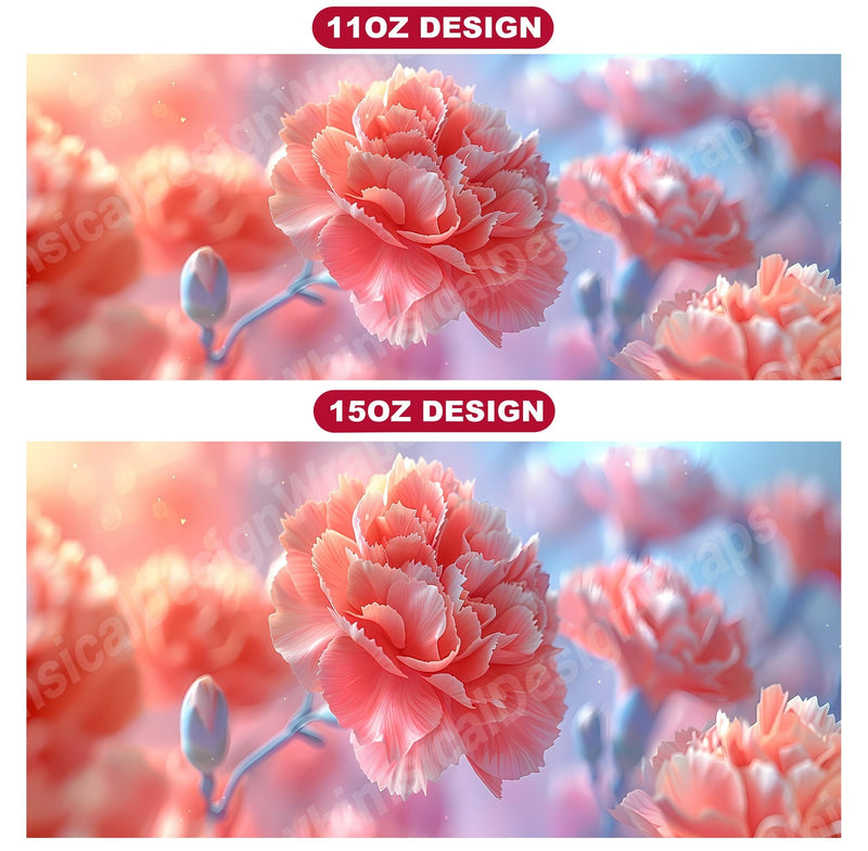 Transform your coffee breaks into moments of floral bliss with Flower Carnations digital mug wraps. Featuring breathtaking carnation flowers, these wraps infuse your day with the beauty of nature. Sip from these delightful mug wraps and let the charming carnations brighten up your mood, creating a serene and uplifting ambiance with every sip.