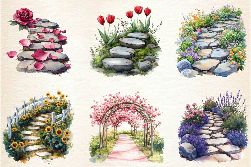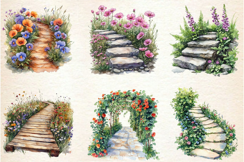 Beautiful flower garden pathways perfect for botanical landscape projects.