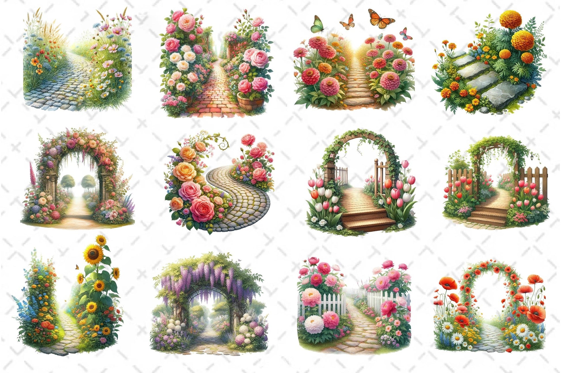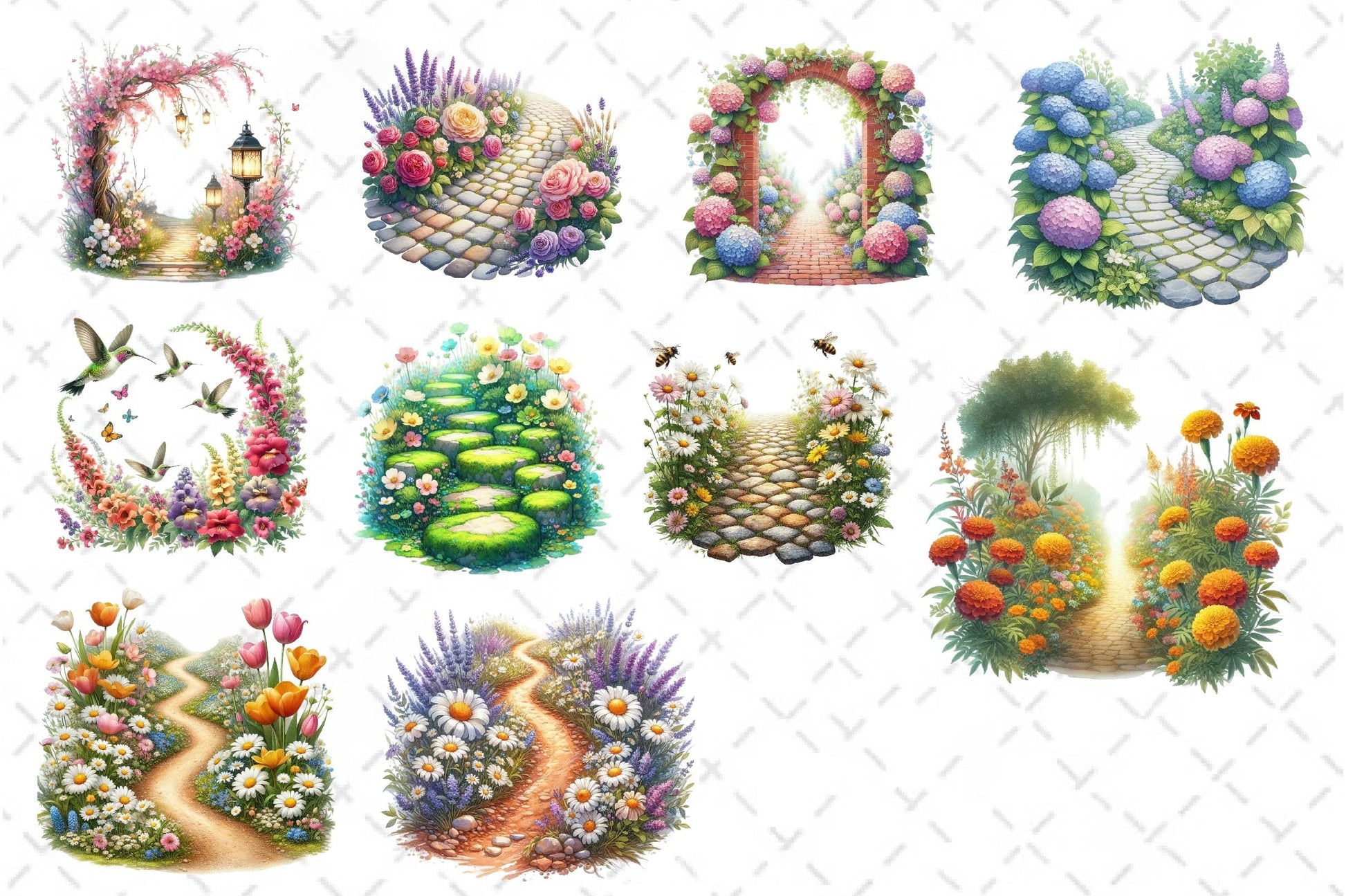Walk with this Flower Garden Pathway Clipart Bundle, featuring garden path designs, perfect for landscape gardening crafts.