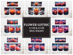 Dive into the captivating allure of Flower Gothic digital mug wraps. Featuring intricate gothic-inspired designs, these wraps add a touch of mystery to your beverage experience. Sip from these delightful mug wraps and immerse yourself in the dark beauty of gothic aesthetics, making each sip a moment of enchanting elegance and sophistication.