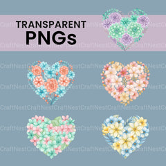 Love with this Flower Heart 15 Clipart Bundle, featuring floral heart designs, perfect for flower valentine crafts.