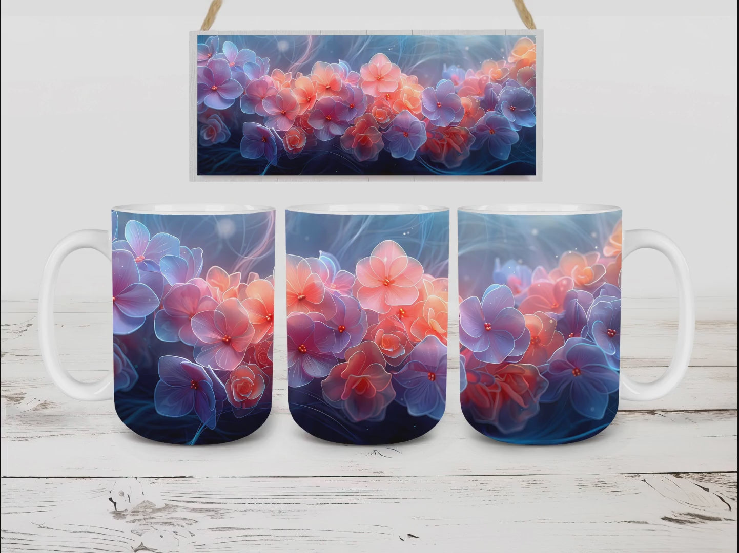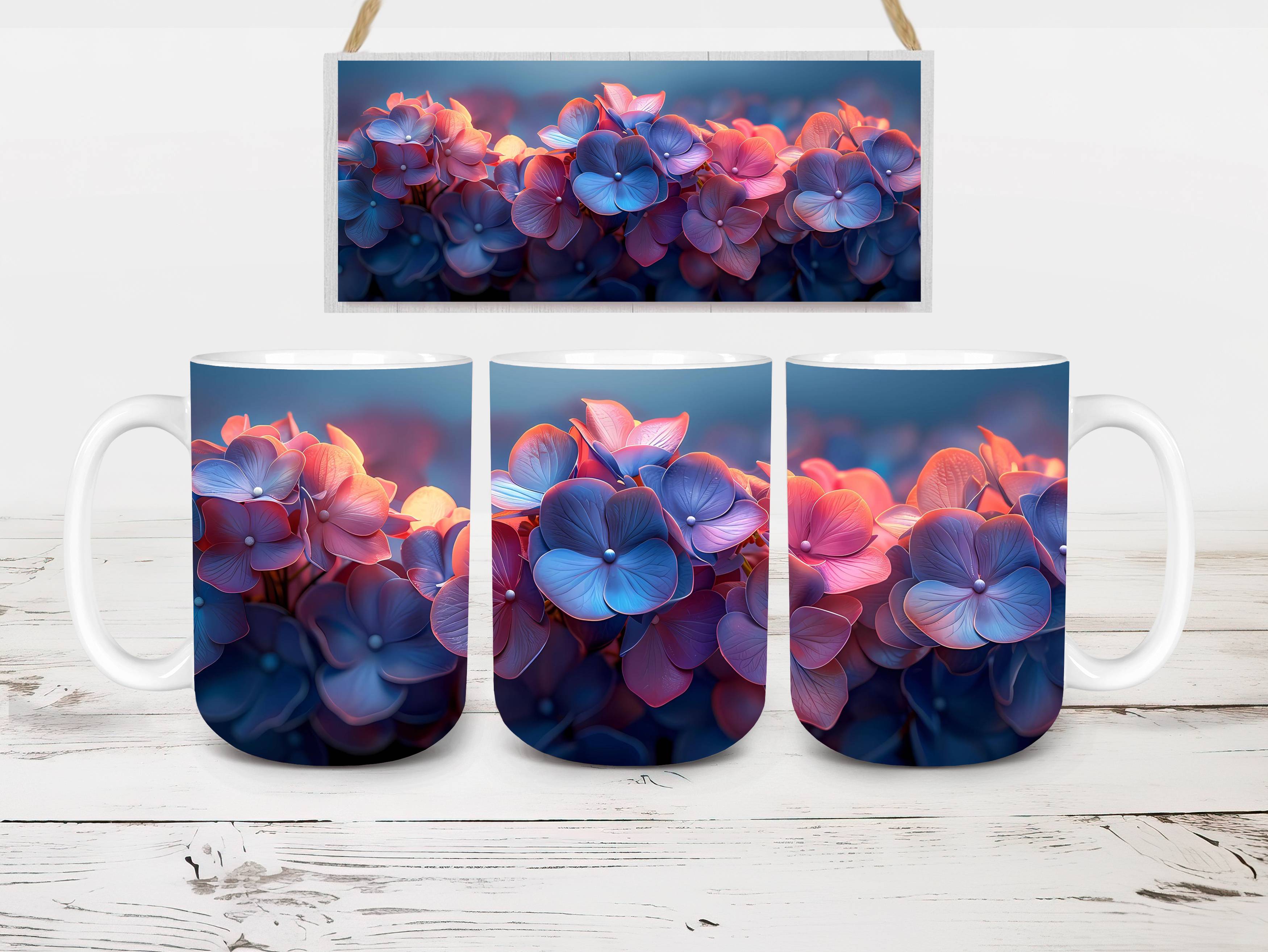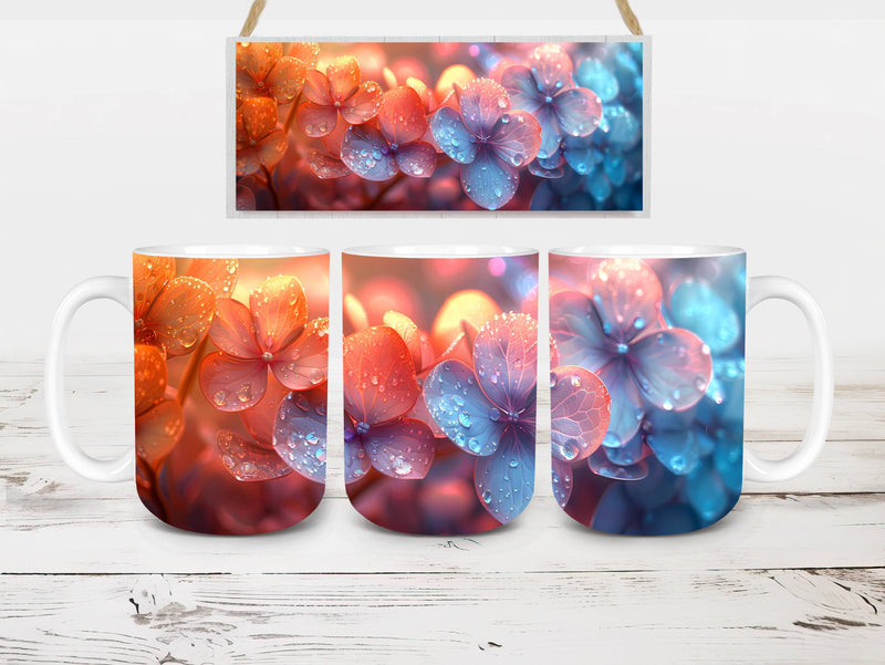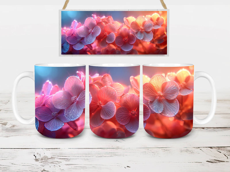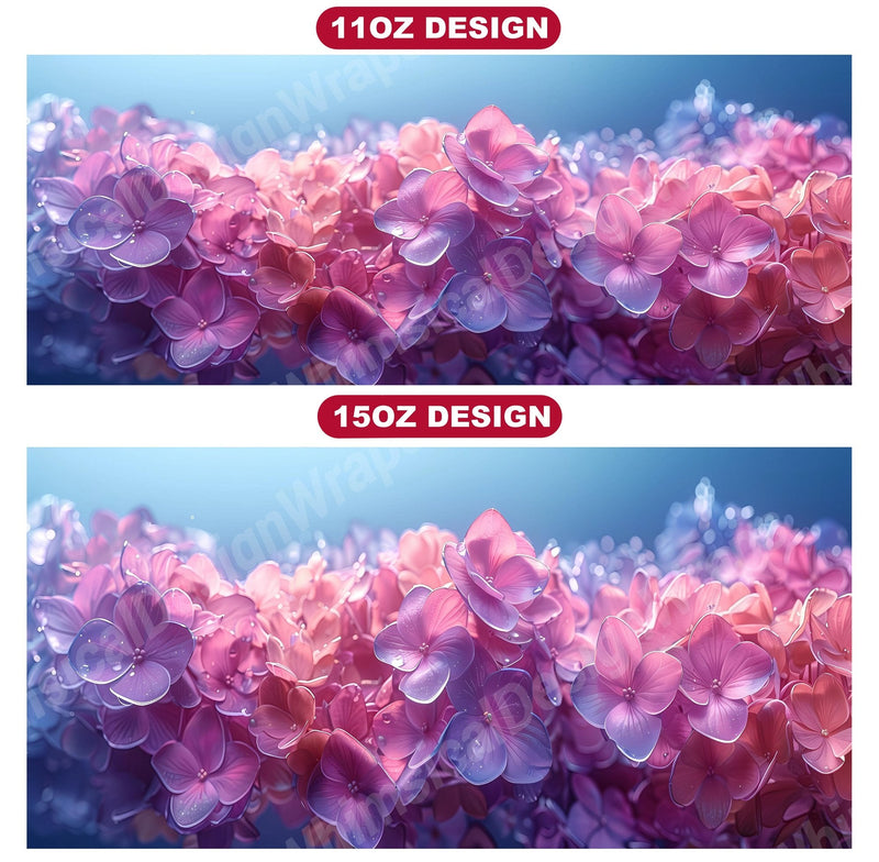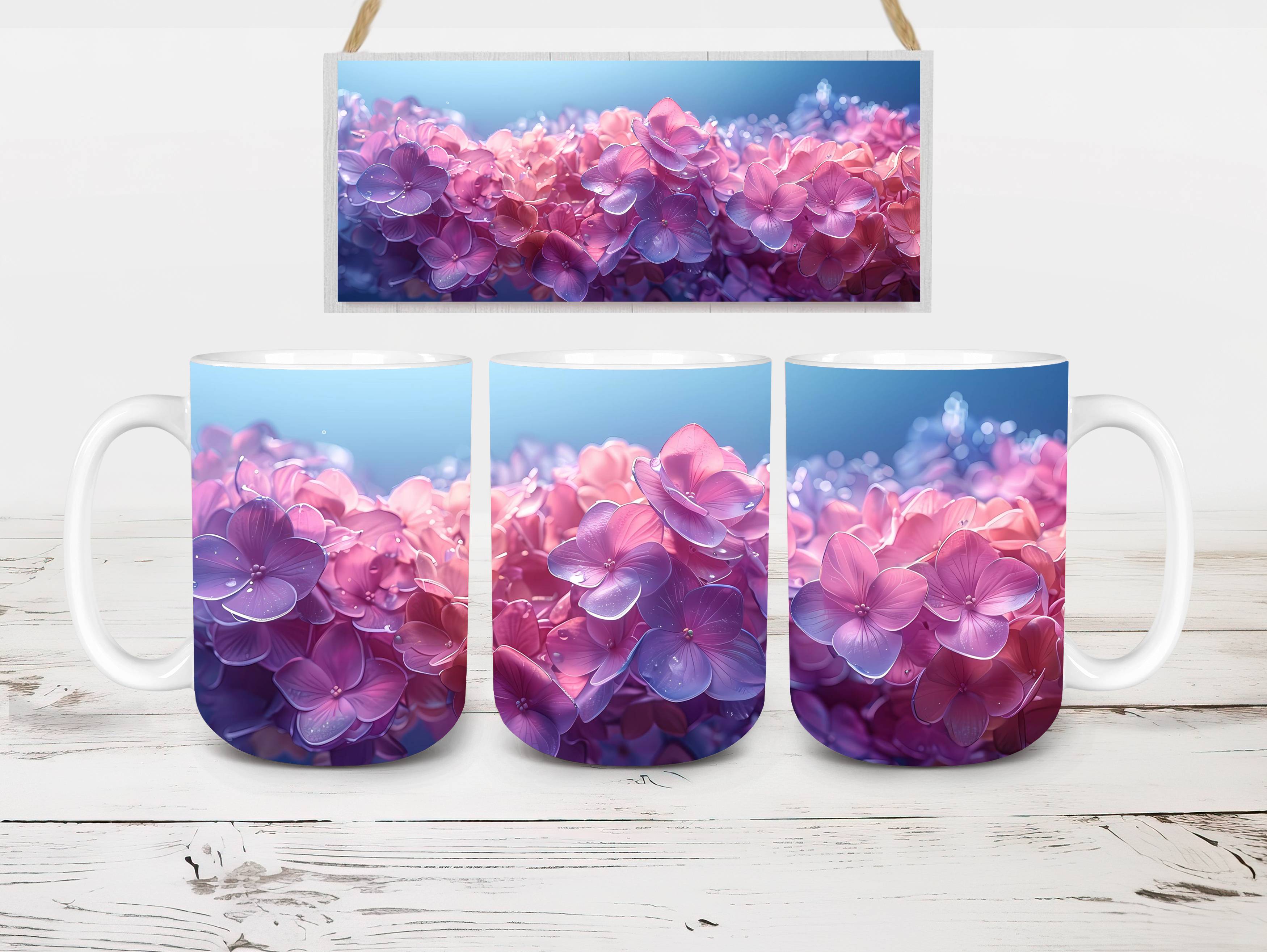 Indulge in the beauty of Flower Hydrangeas digital mug wraps. Adorned with exquisite hydrangea motifs, these wraps infuse your coffee or tea time with the charm of blooming flowers. Sip from these enchanting mug wraps and let the serene elegance of hydrangeas create a soothing atmosphere, making every sip a moment of tranquility.