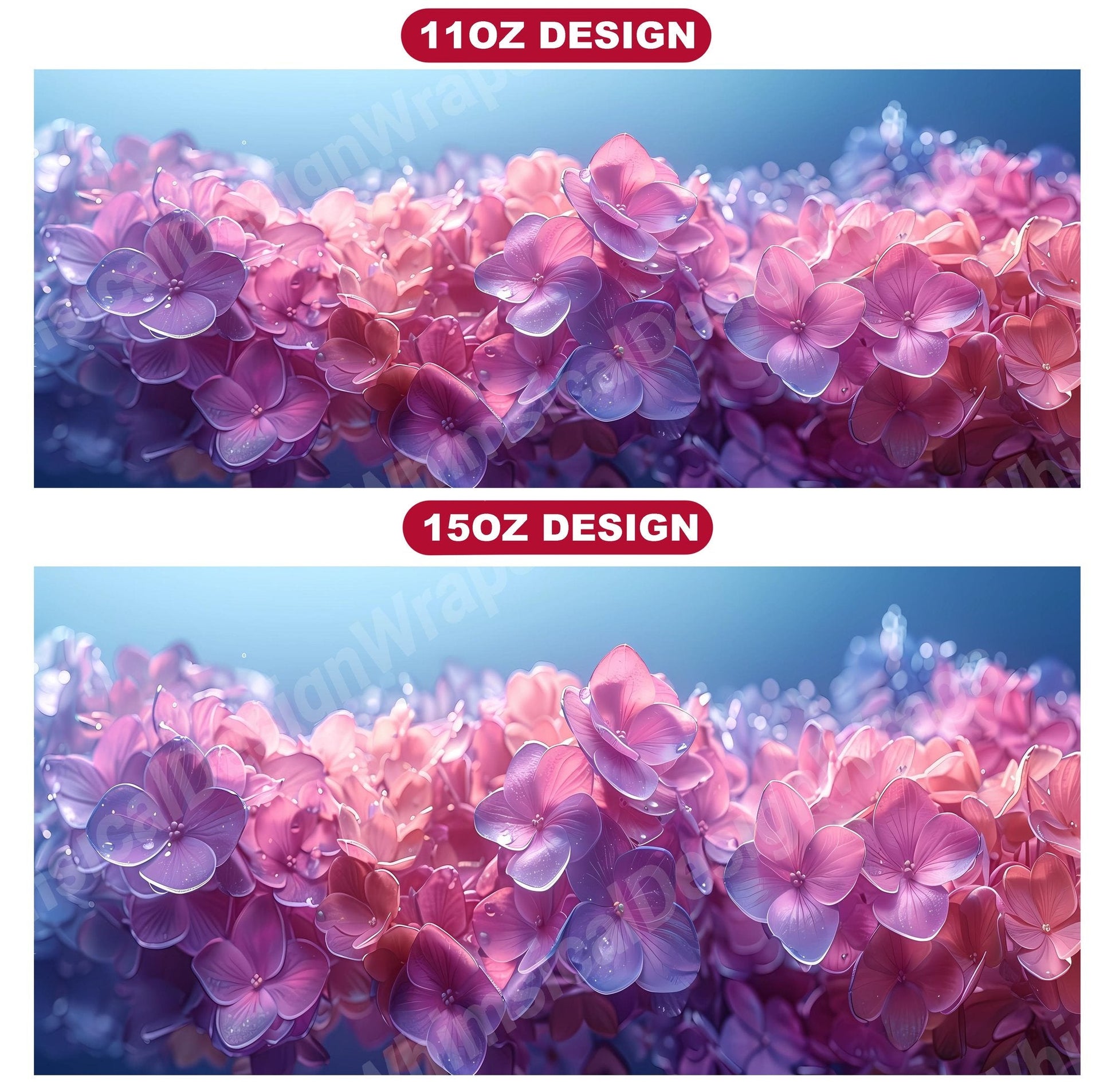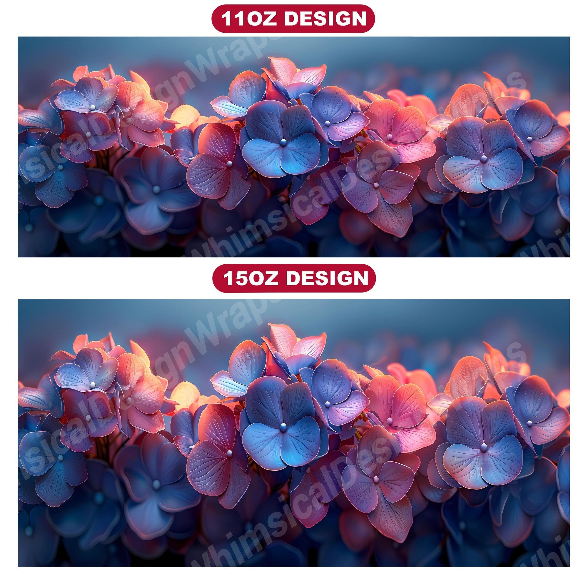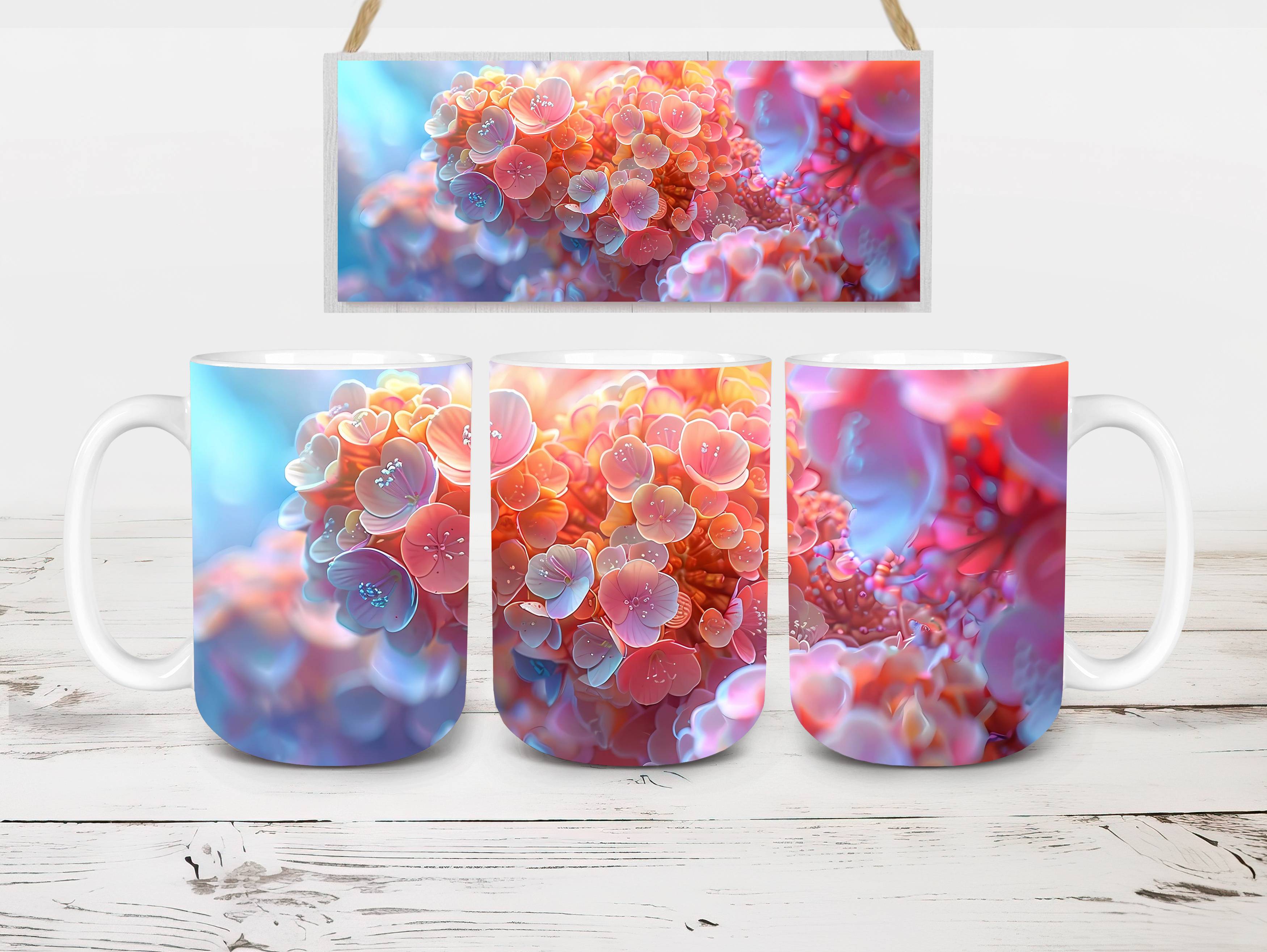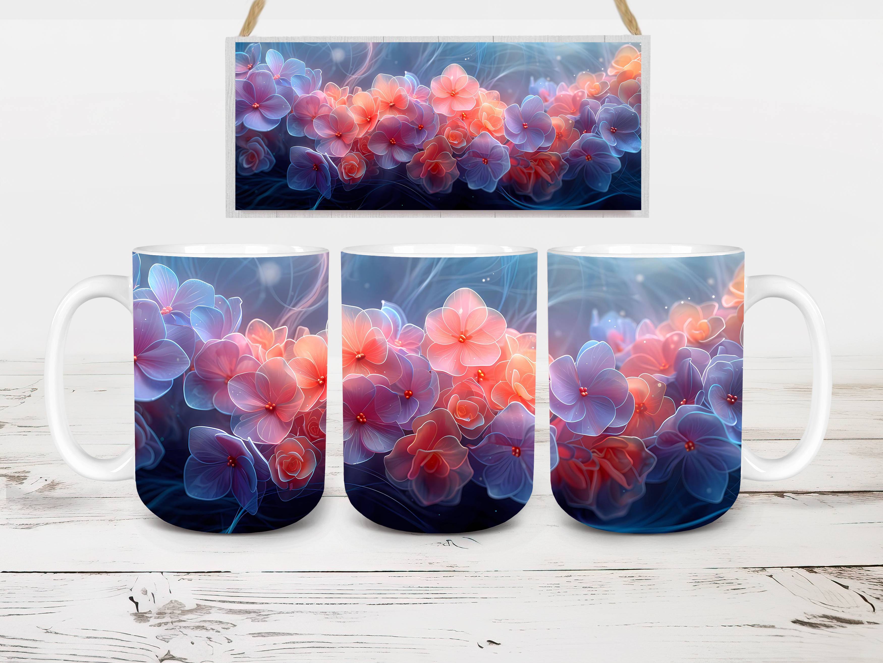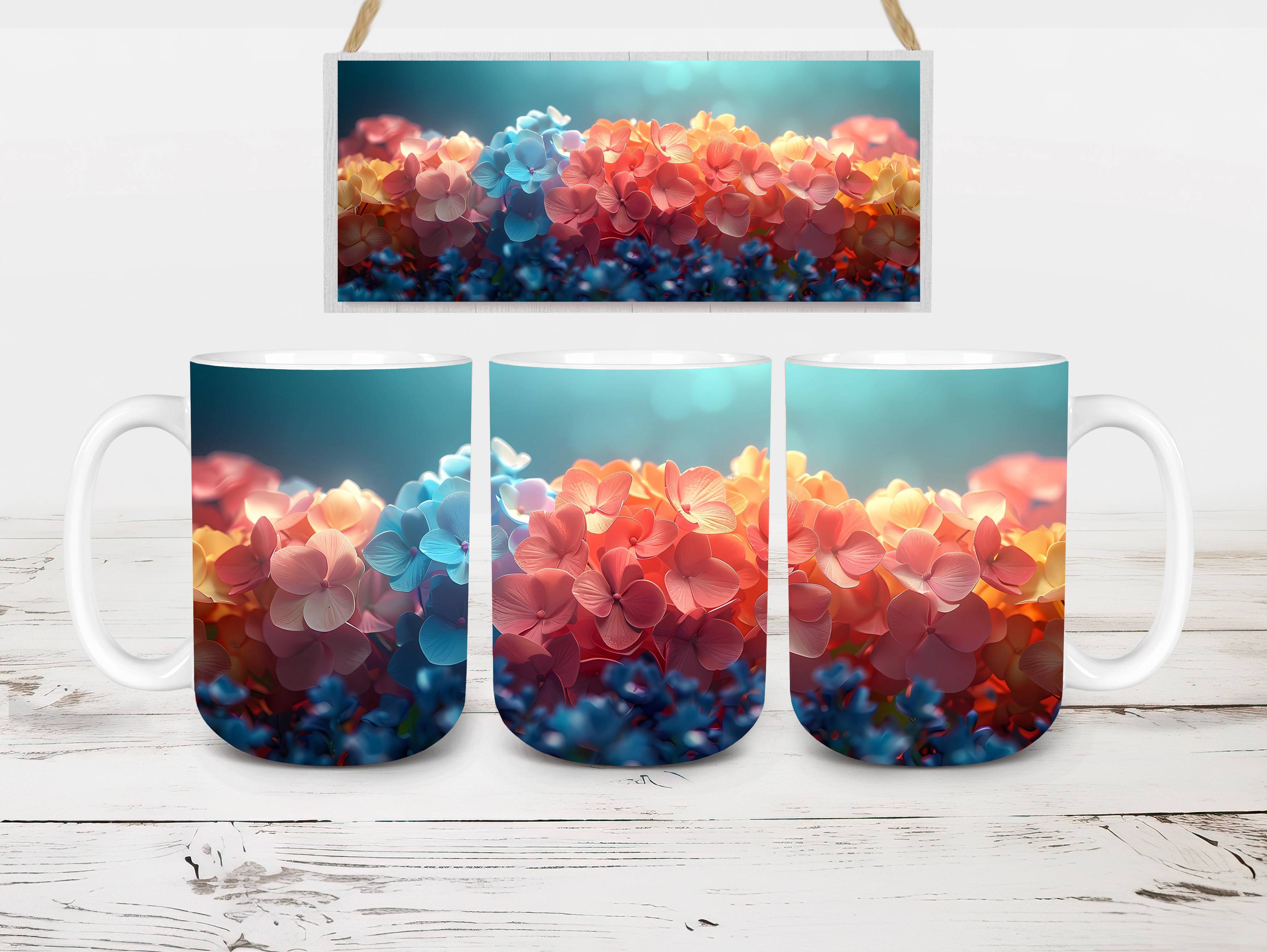 Indulge in the beauty of Flower Hydrangeas digital mug wraps. Adorned with exquisite hydrangea motifs, these wraps infuse your coffee or tea time with the charm of blooming flowers. Sip from these enchanting mug wraps and let the serene elegance of hydrangeas create a soothing atmosphere, making every sip a moment of tranquility.