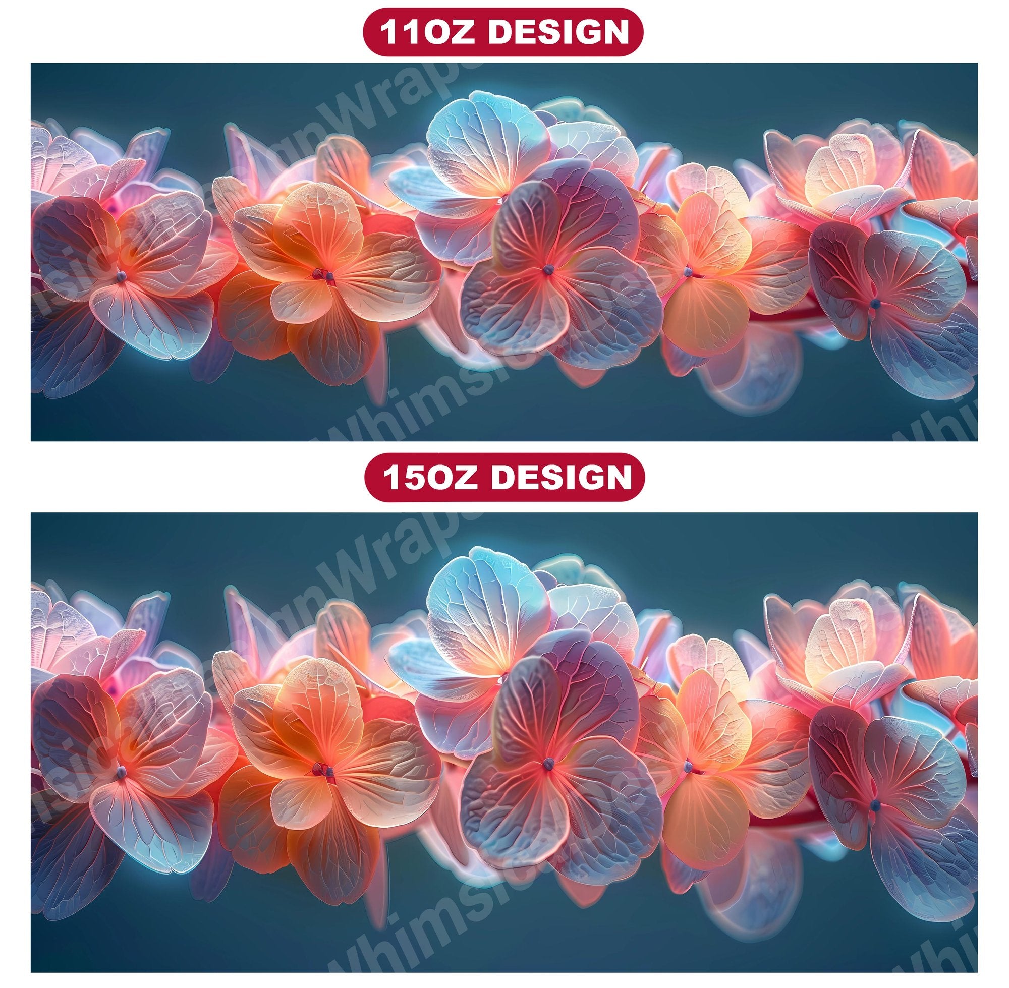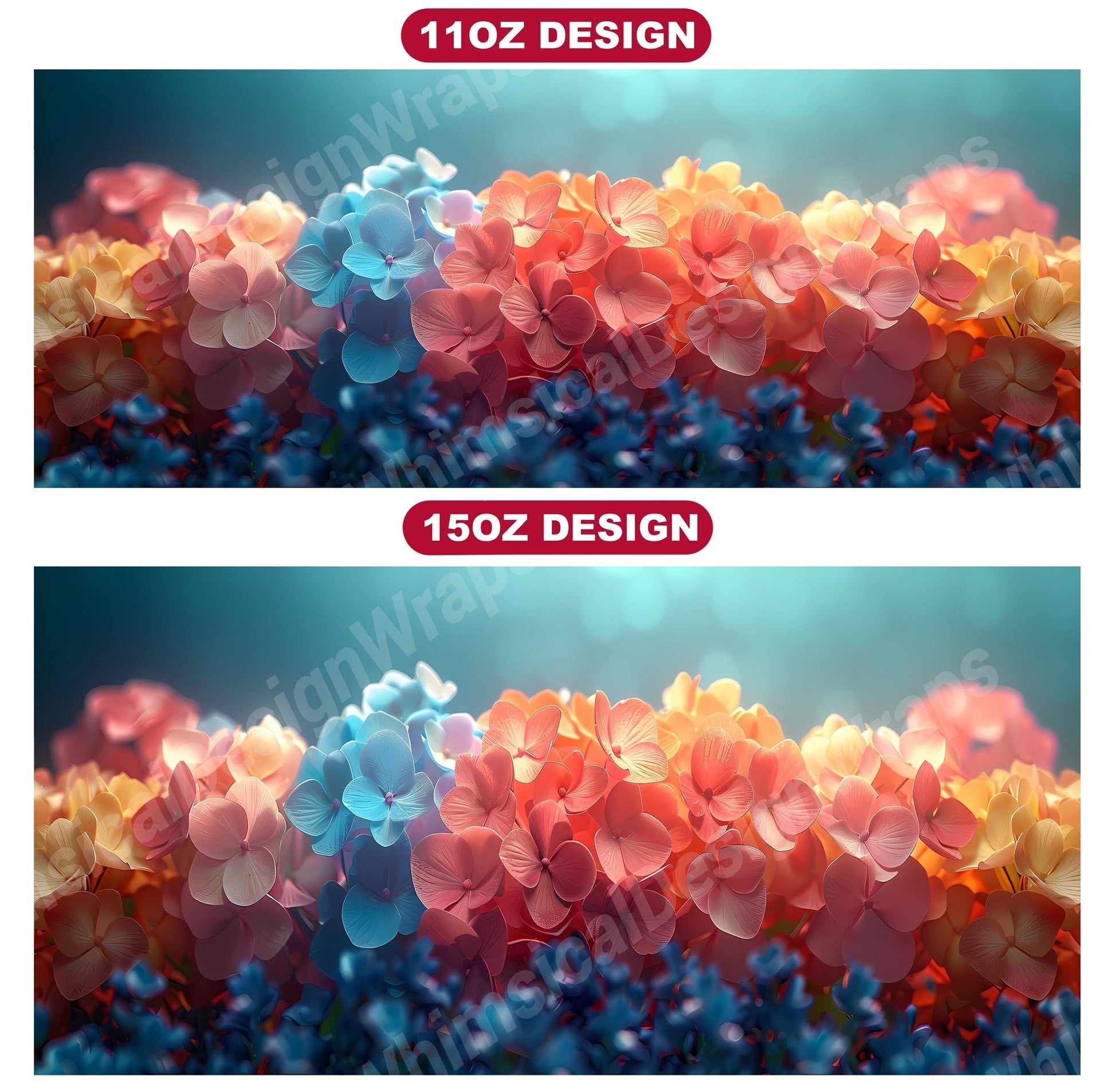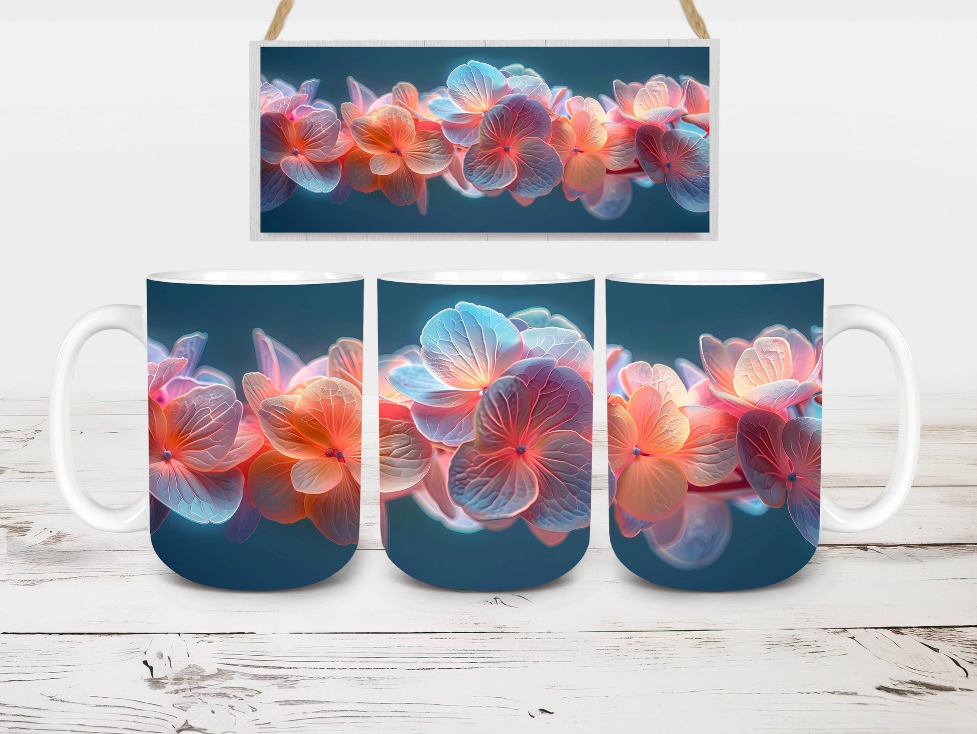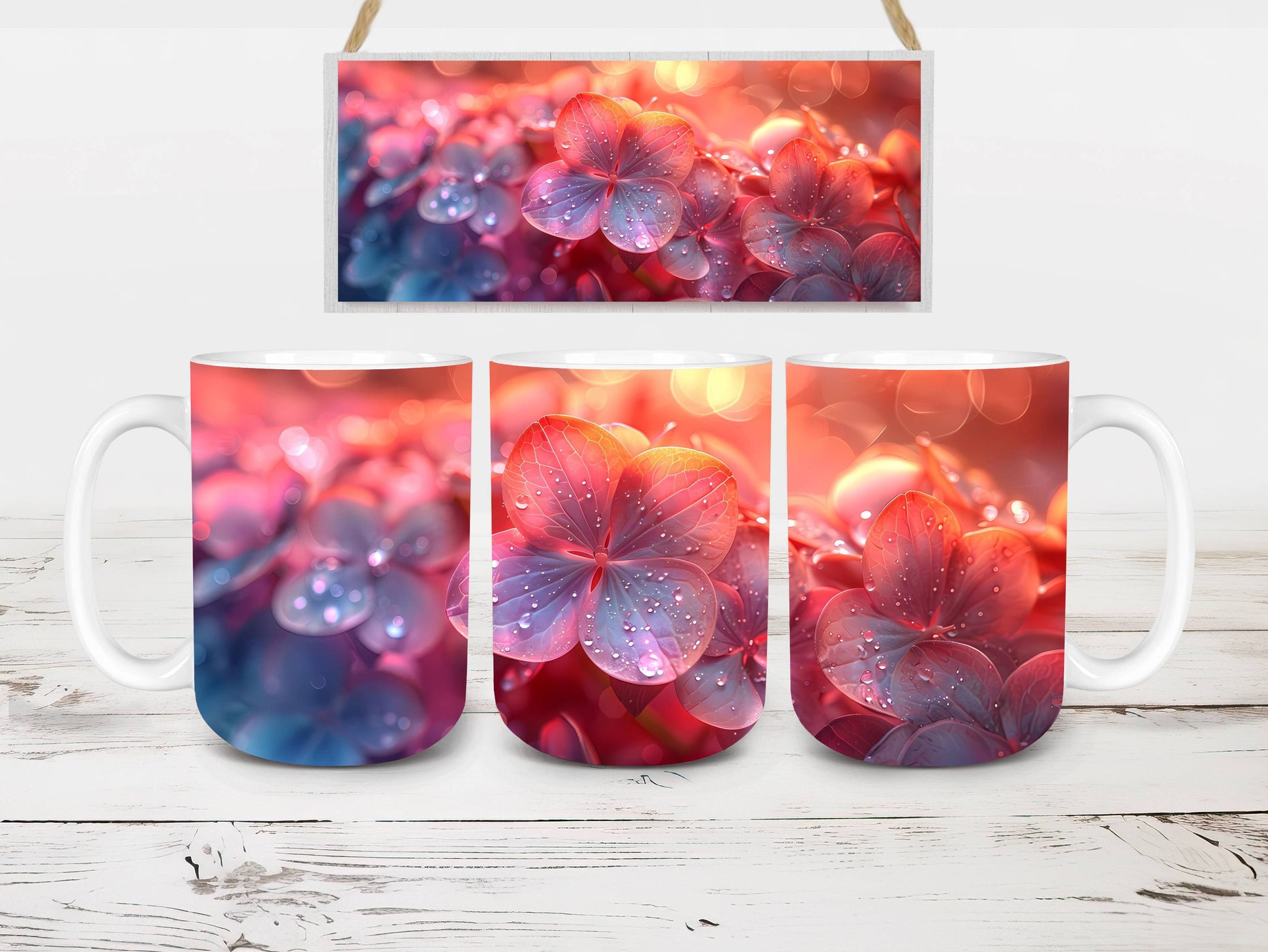 Indulge in the beauty of Flower Hydrangeas digital mug wraps. Adorned with exquisite hydrangea motifs, these wraps infuse your coffee or tea time with the charm of blooming flowers. Sip from these enchanting mug wraps and let the serene elegance of hydrangeas create a soothing atmosphere, making every sip a moment of tranquility.
