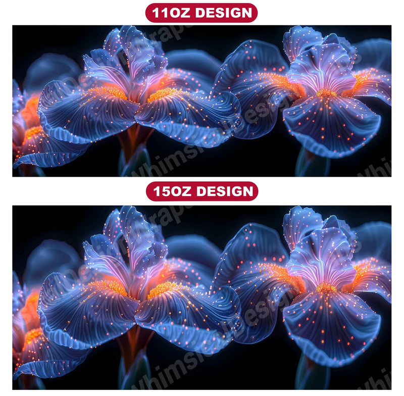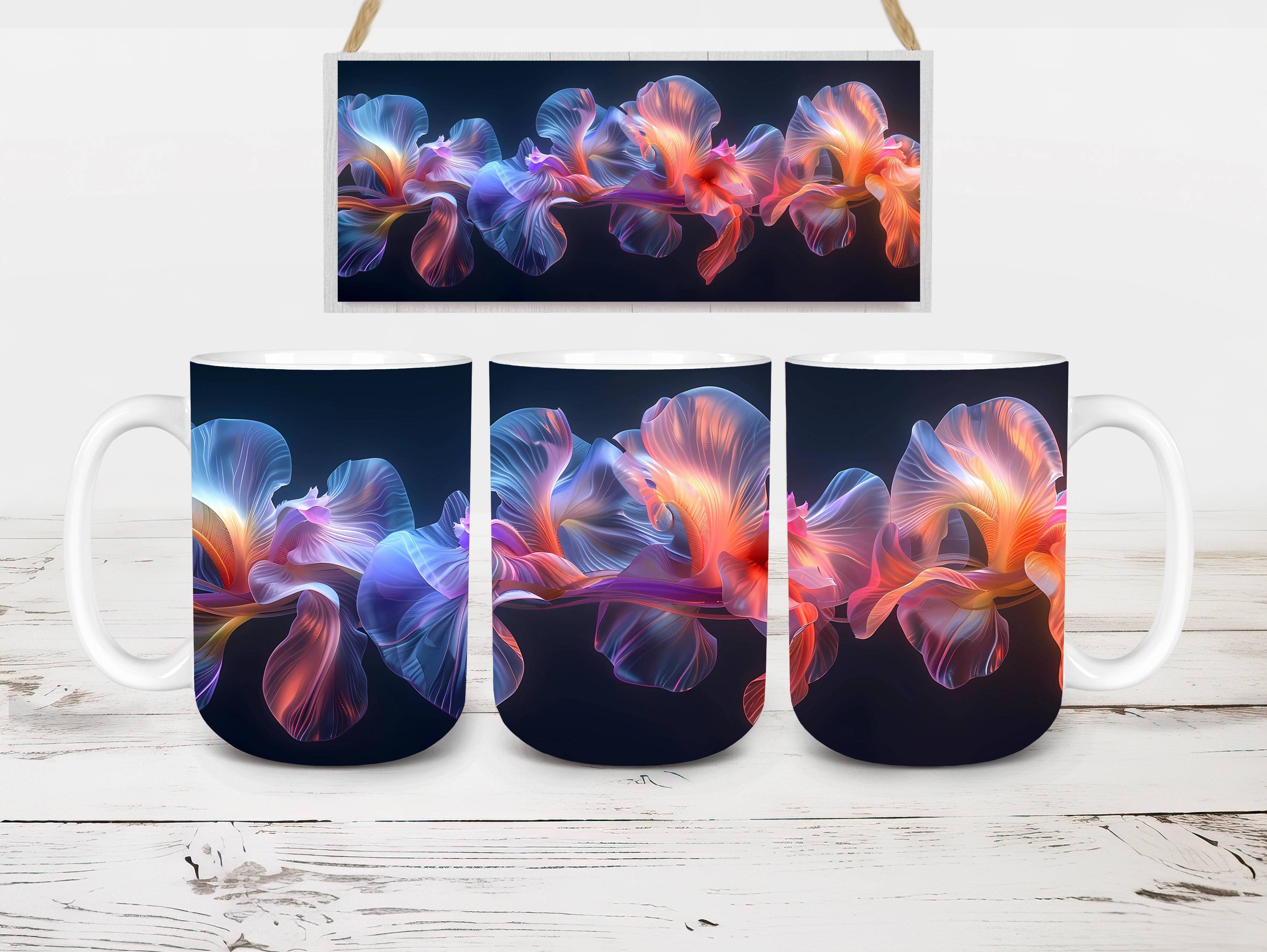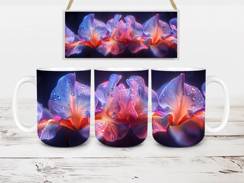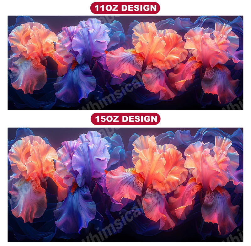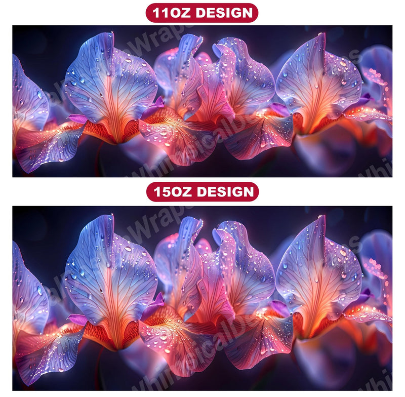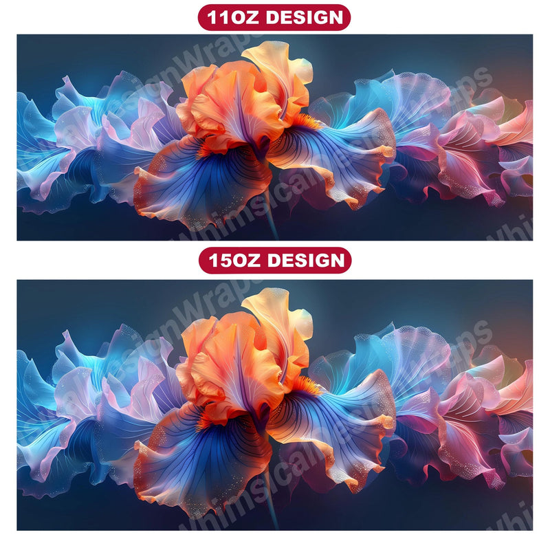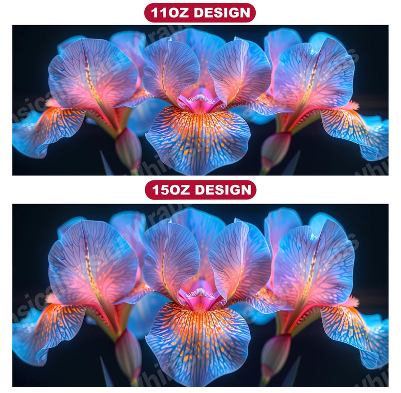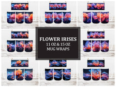 Embrace the elegance of Flower Irises digital mug wraps, featuring stunning iris illustrations. These wraps add a touch of sophistication to your coffee or tea time, making each sip a moment of refined indulgence. Sip from these delightful mug wraps and immerse yourself in the serene ambiance created by the graceful irises, adding a touch of elegance to your daily routine.