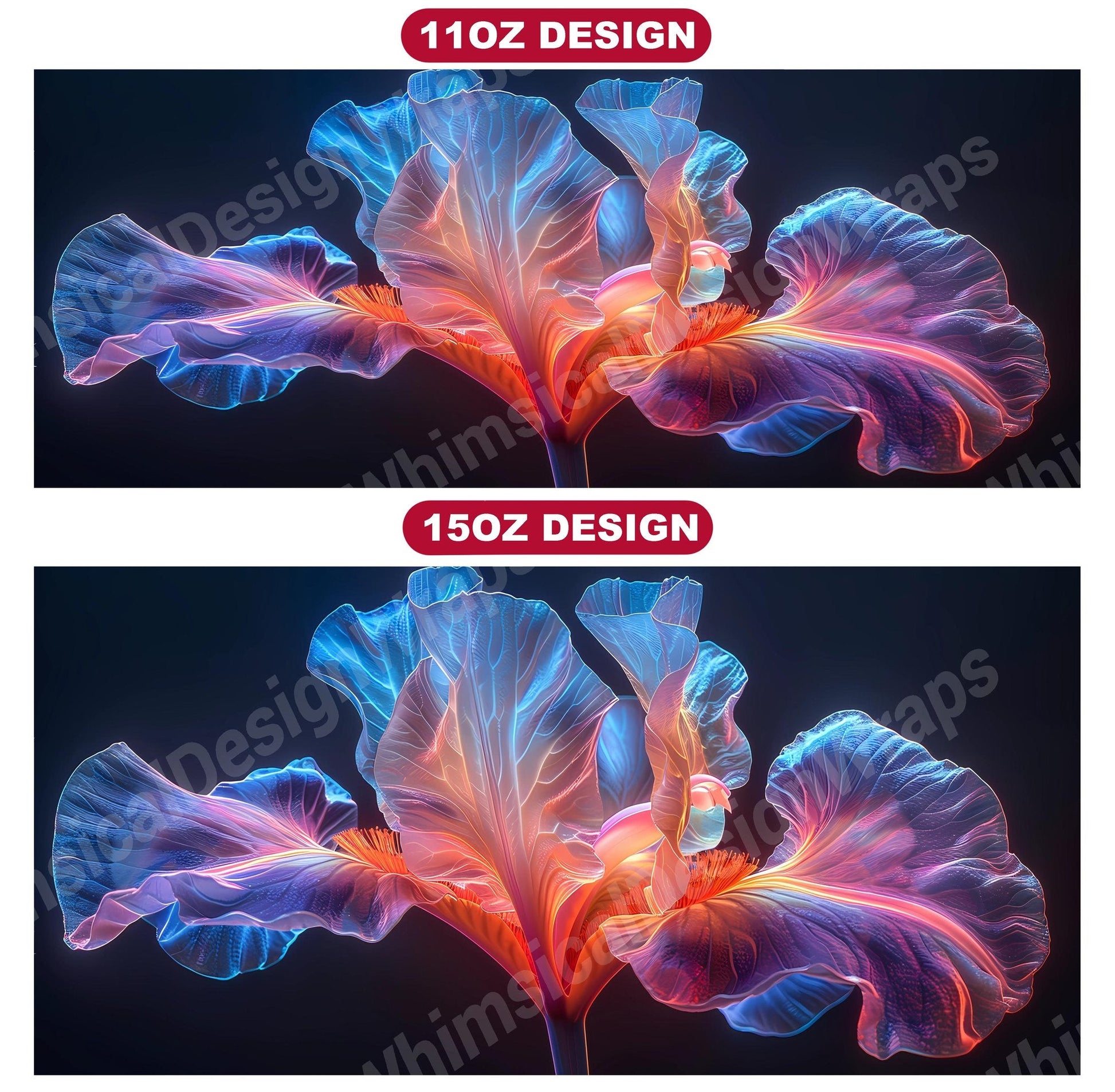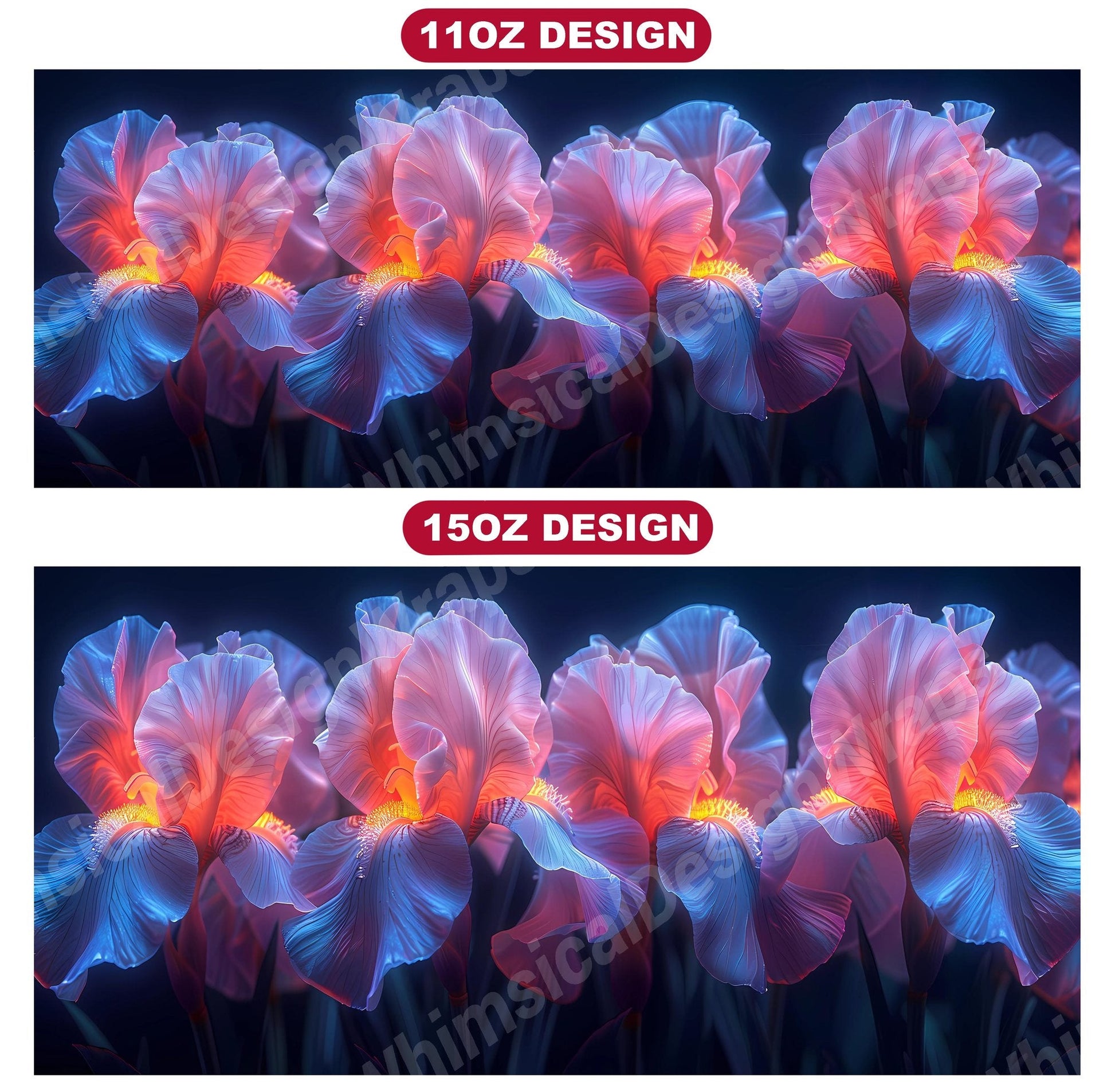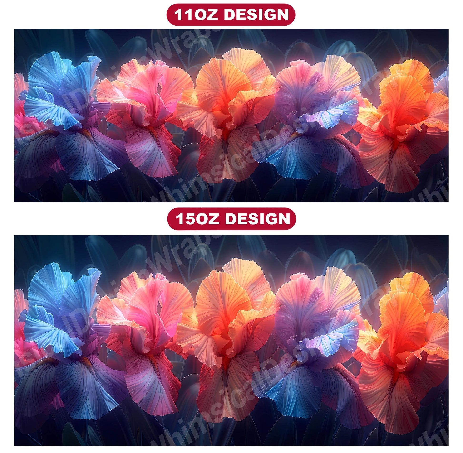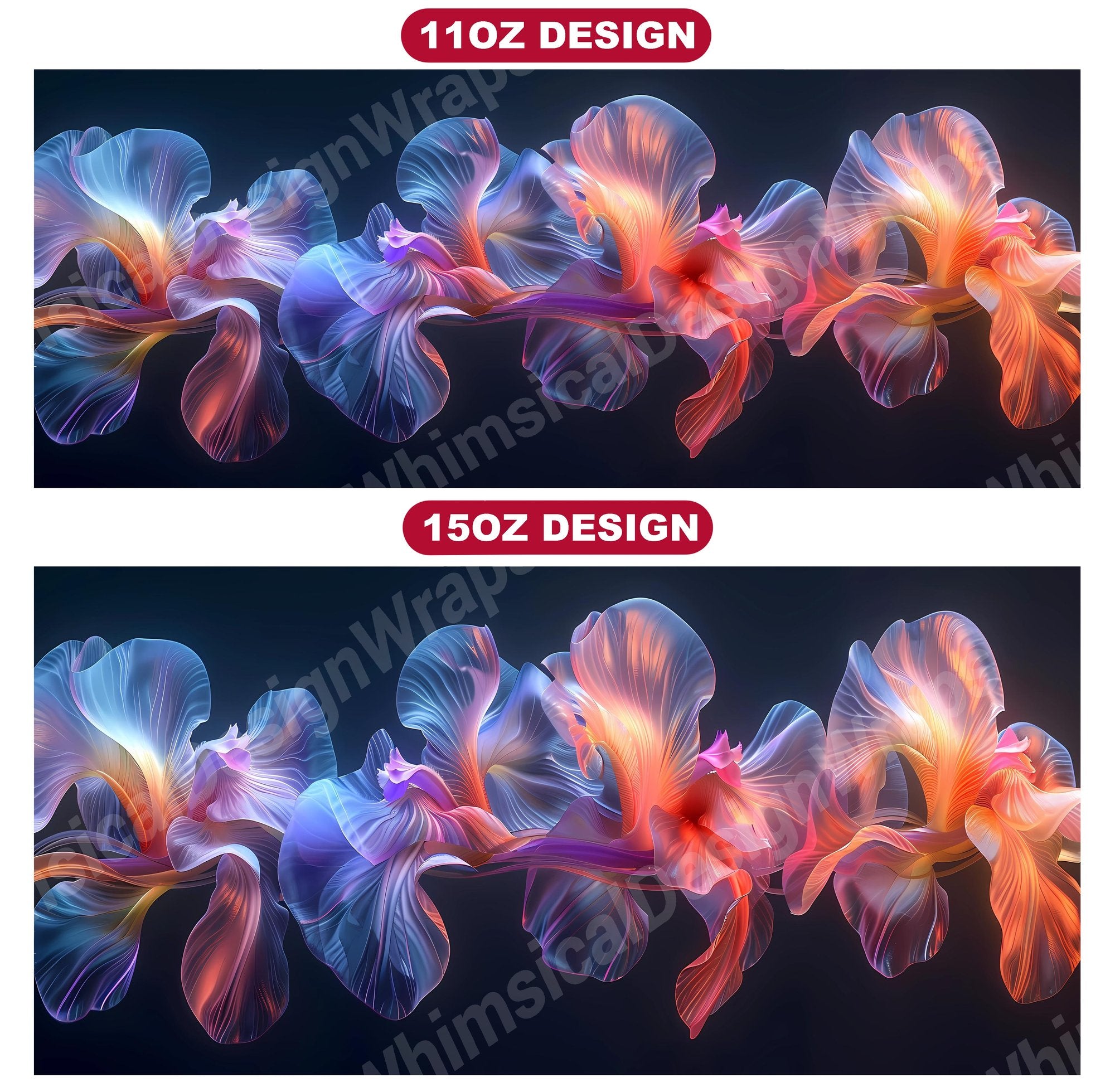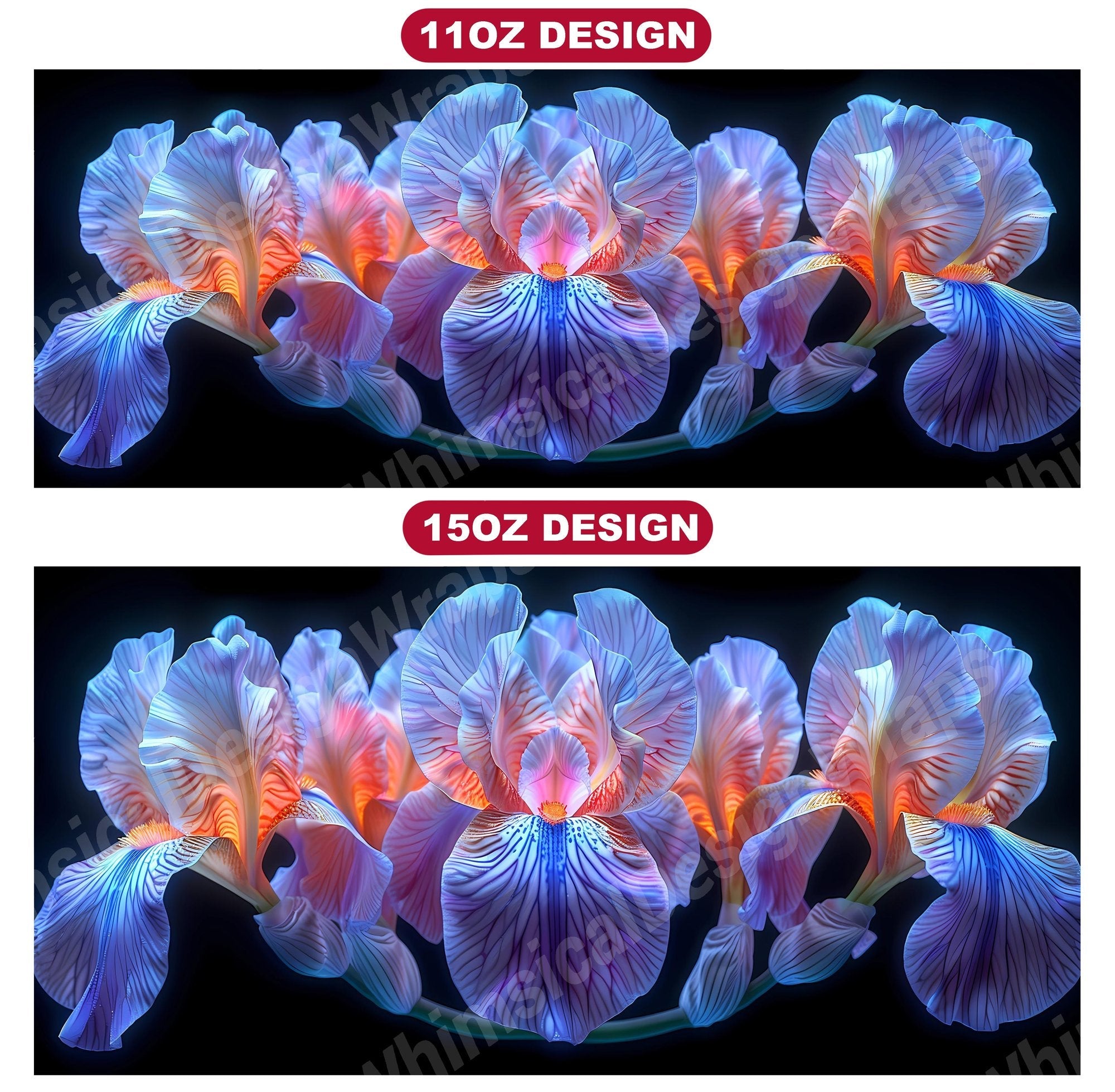 Embrace the elegance of Flower Irises digital mug wraps, featuring stunning iris illustrations. These wraps add a touch of sophistication to your coffee or tea time, making each sip a moment of refined indulgence. Sip from these delightful mug wraps and immerse yourself in the serene ambiance created by the graceful irises, adding a touch of elegance to your daily routine.