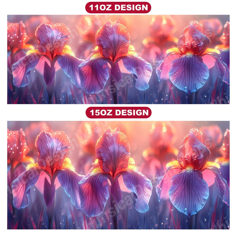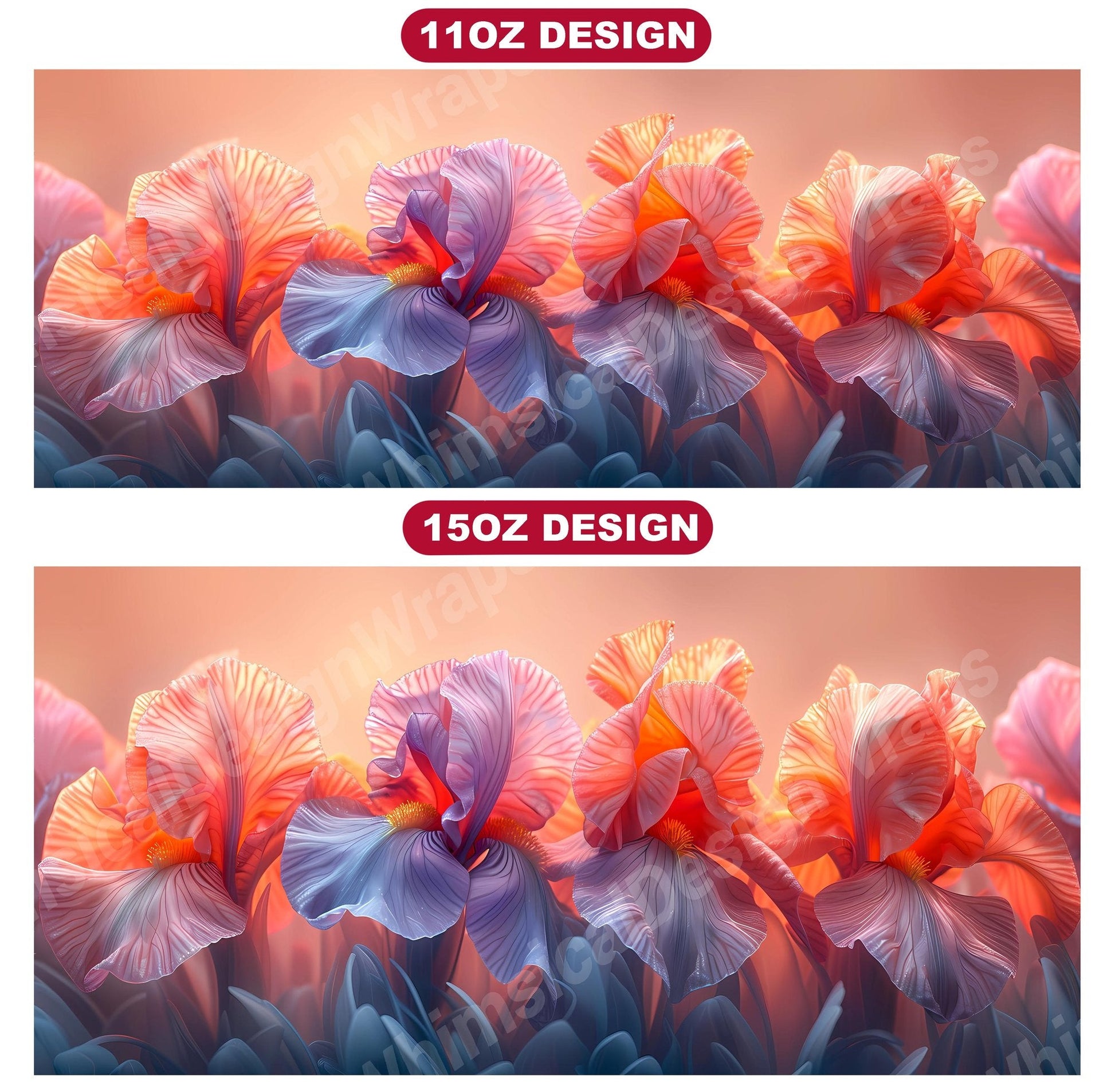 Immerse yourself in the enchanting beauty of Flower Irises digital mug wraps, featuring captivating iris illustrations. Let the graceful irises add a touch of elegance to your morning cup, making each sip a moment of refined indulgence. Sip from these delightful mug wraps and experience the serene ambiance created by the blooming irises, elevating your daily tea or coffee ritual to a new level of sophistication.