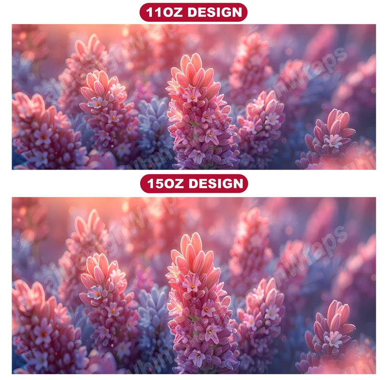 Immerse yourself in the delicate beauty of Flower Lavender digital mug wraps. Adorned with elegant lavender blossoms, these wraps evoke a sense of tranquility and relaxation. Sip from these charming mug wraps and let the soothing essence of lavender enhance your coffee or tea time, creating a serene and calming atmosphere with every sip.