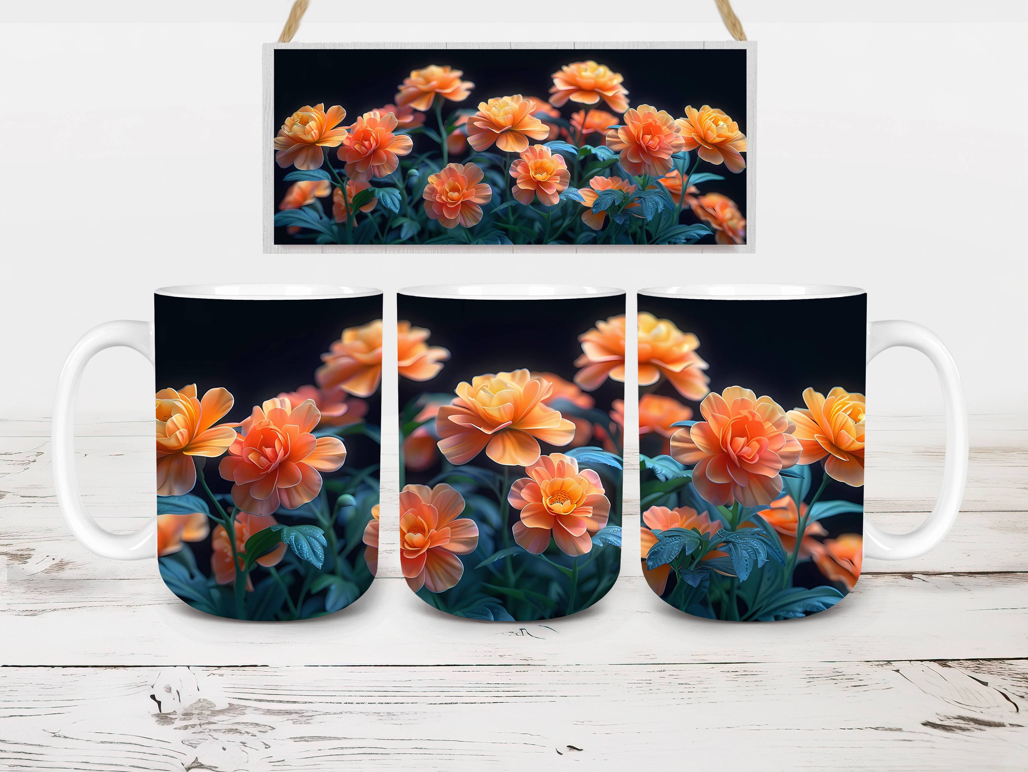 Elevate your beverage experience with Flower Marigolds digital mug wraps. Adorned with vibrant marigold patterns, these wraps bring the essence of summer to your cup. Sip from these delightful mug wraps and immerse yourself in the beauty and energy of marigold blooms, adding a touch of sunshine and cheerfulness to your morning routine.