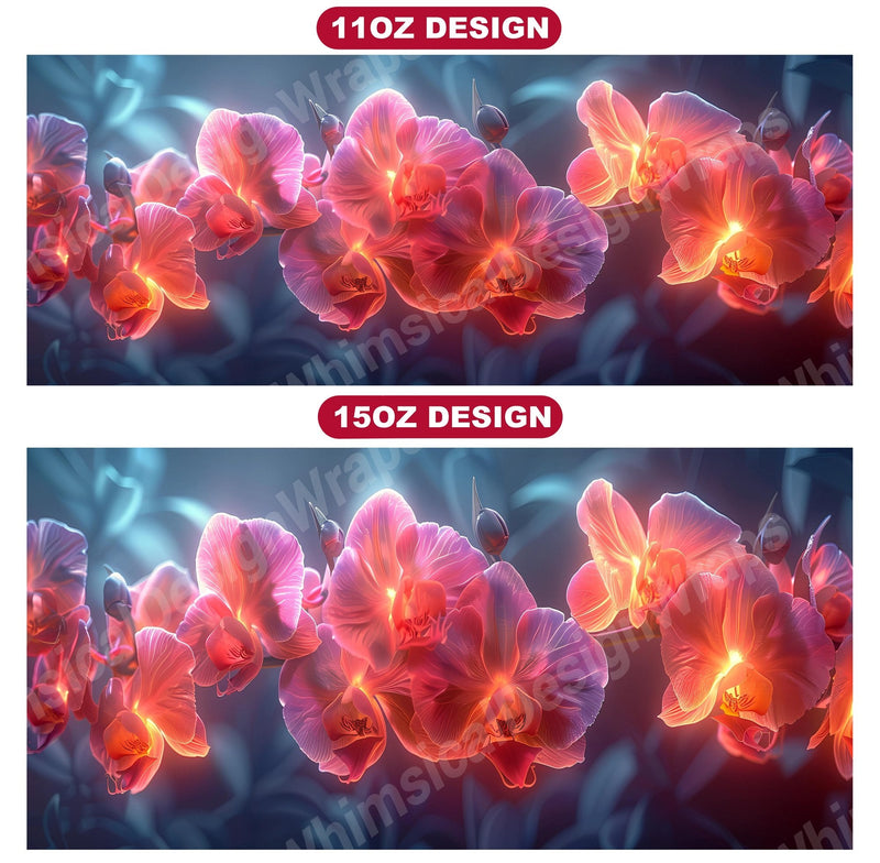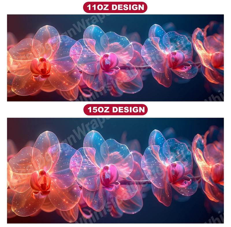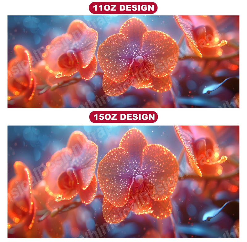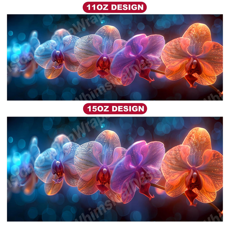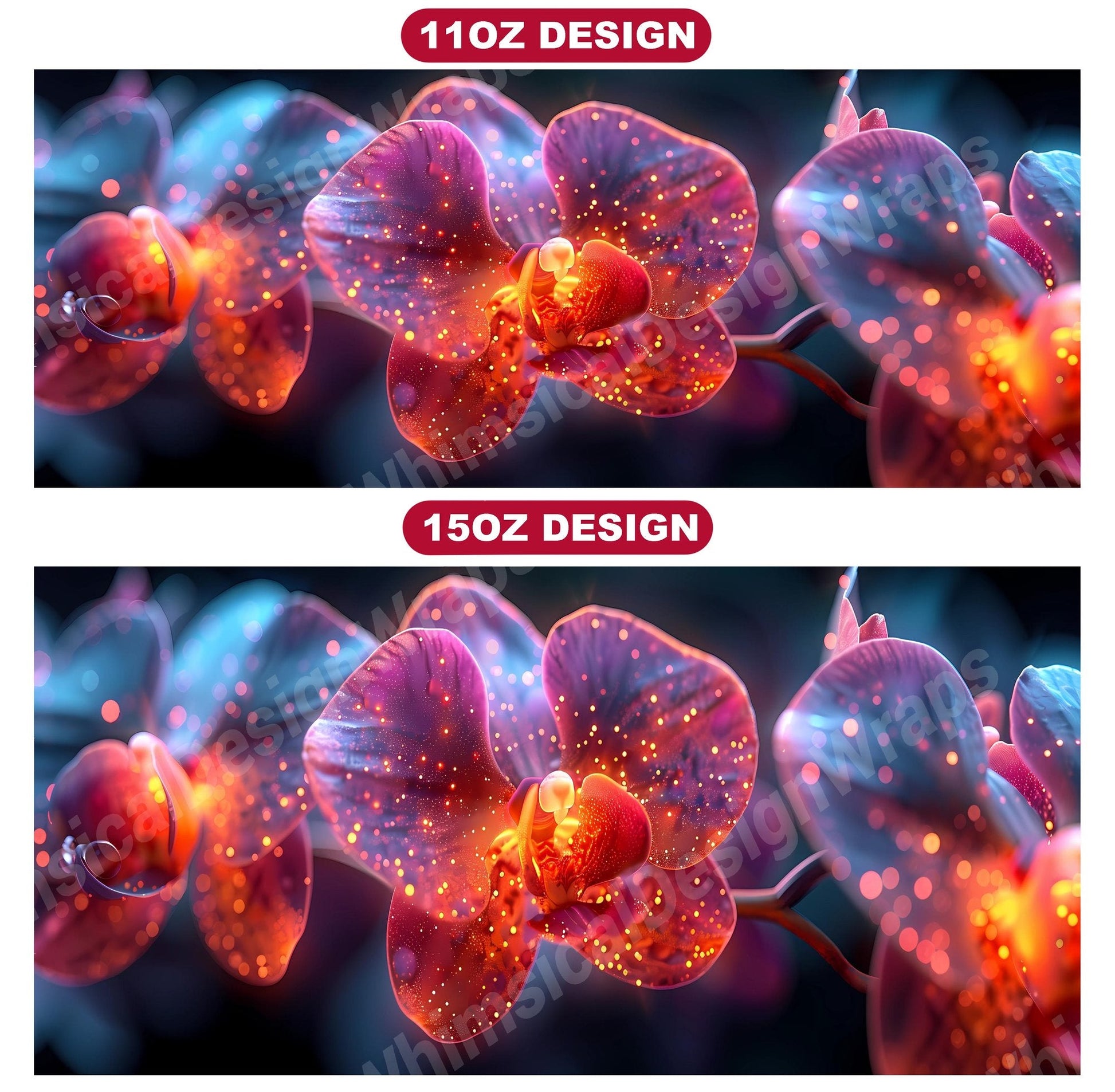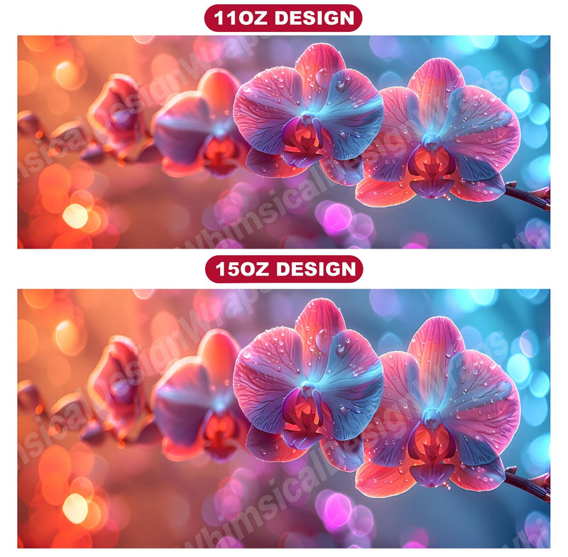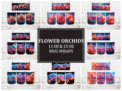 Delight in the captivating charm of Flower Orchids digital mug wraps, featuring mesmerizing orchid flower designs that bring a burst of color to your favorite cup. Sip from these elegant wraps and immerse yourself in the timeless allure of orchids, making your tea or coffee time a moment of floral indulgence. Experience the joy of orchid flowers in every cup, adding a touch of elegance to your day.