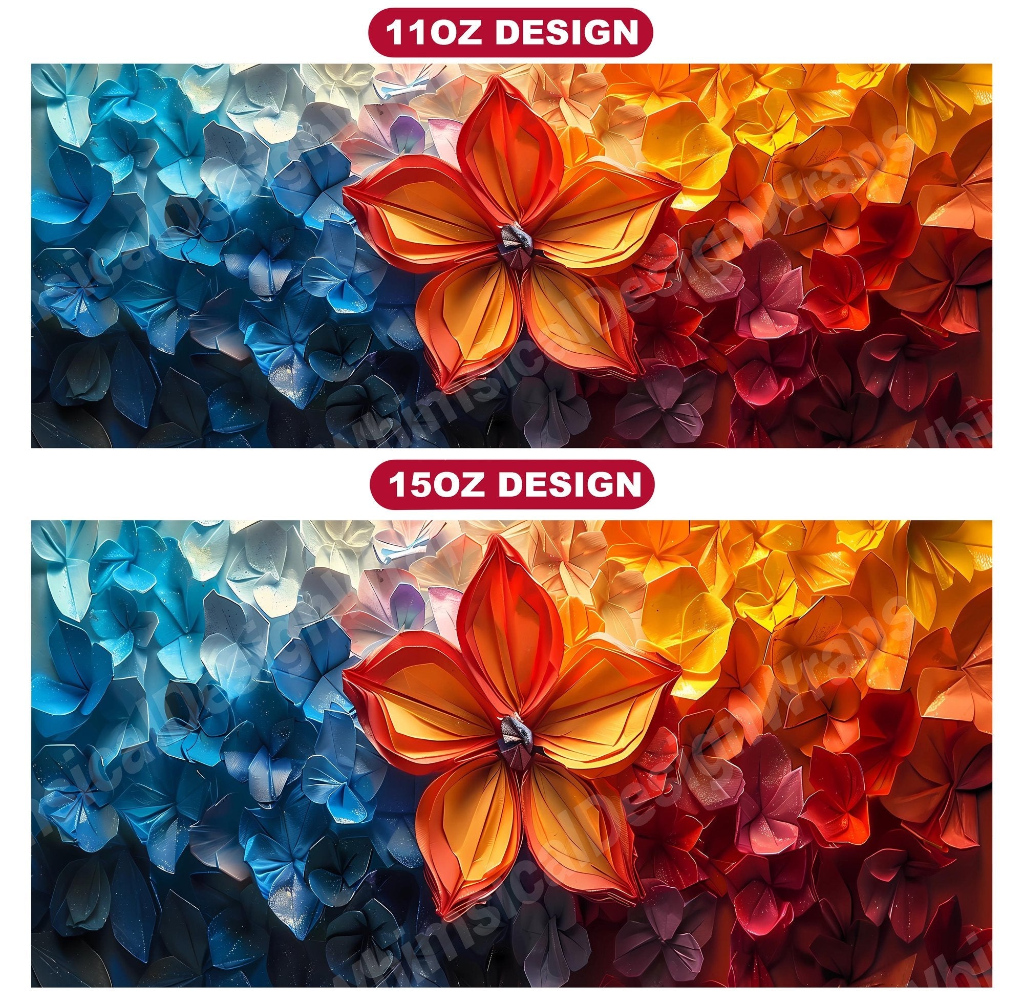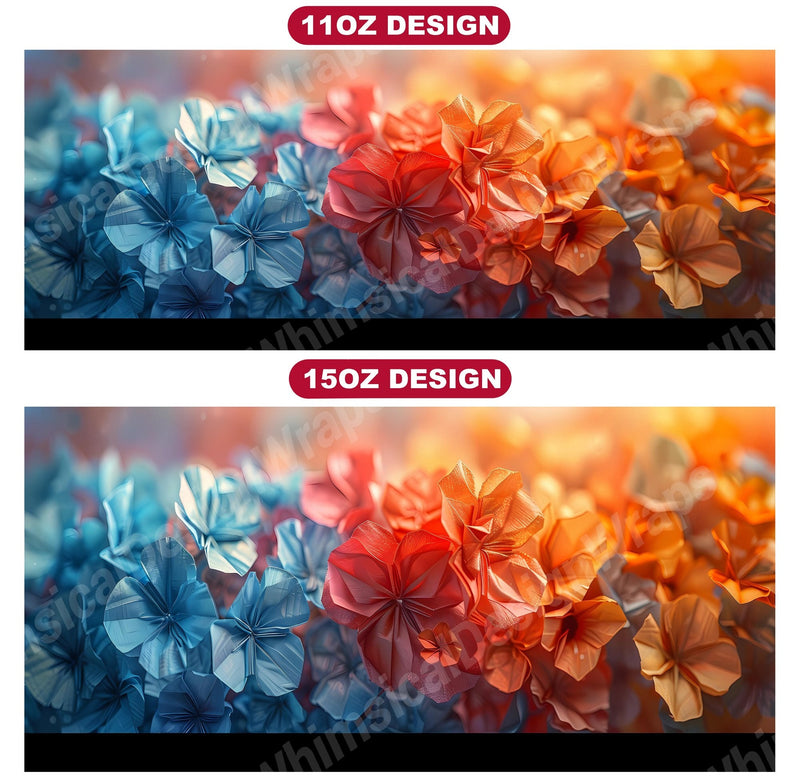 Elevate your beverage experience with Flower Origami digital mug wraps, featuring captivating origami-inspired designs that blend tradition with modernity. Sip from these chic wraps and immerse yourself in the graceful simplicity of origami, making every sip a moment of artistic inspiration. Experience the beauty of folded paper art in every cup, adding a touch of elegance to your morning ritual.