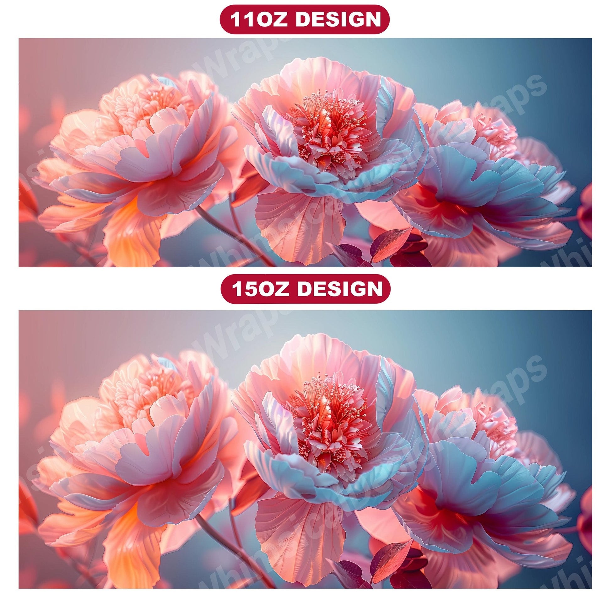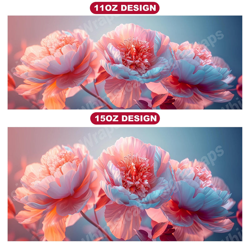 Dive into the enchanting world of Flower Peonies digital mug wraps, featuring lush peony blooms that add a touch of elegance to your favorite cup. Sip from these delightful wraps and let the timeless beauty of peonies brighten up your tea or coffee time, making every sip a moment of floral bliss. Experience the joy of blooming peonies in every cup, adding a dash of natural charm to your day.