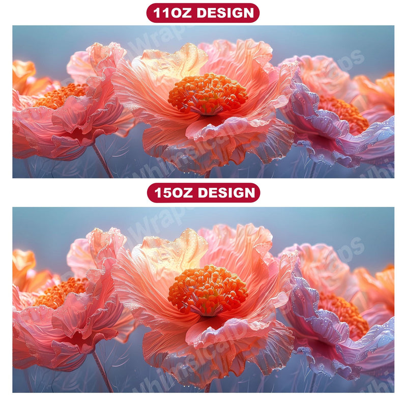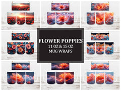Immerse yourself in the beauty of Flower Poppies digital mug wraps, featuring enchanting poppy flower designs that exude elegance and charm. Sip from these delightful wraps and let the timeless appeal of poppies bring a touch of nature's grace to your tea or coffee time. Experience the joy of floral artistry in every cup, adding a dash of sophistication to your morning ritual.