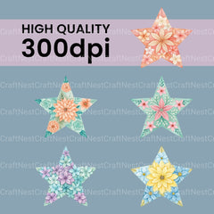Shine with this Flower Star 15 Clipart Bundle, featuring celestial flower star designs, perfect for floral space crafts.