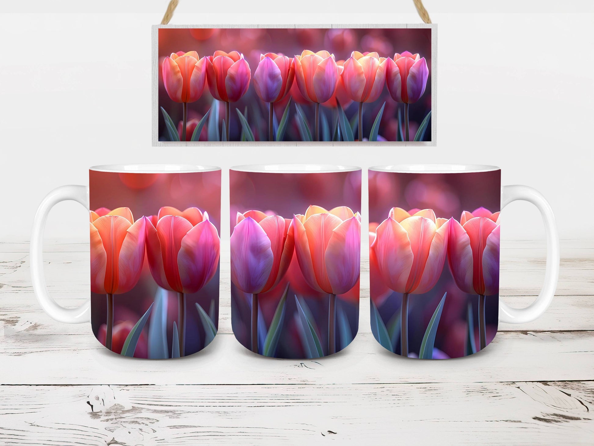 Elevate your beverage experience with Flower Tulips digital mug wraps. Featuring stunning tulip motifs, these wraps capture the essence of springtime beauty. Sip from these delightful mug wraps and enjoy the vibrant colors and graceful curves of tulip blossoms, infusing each sip with the freshness and vitality of spring.
