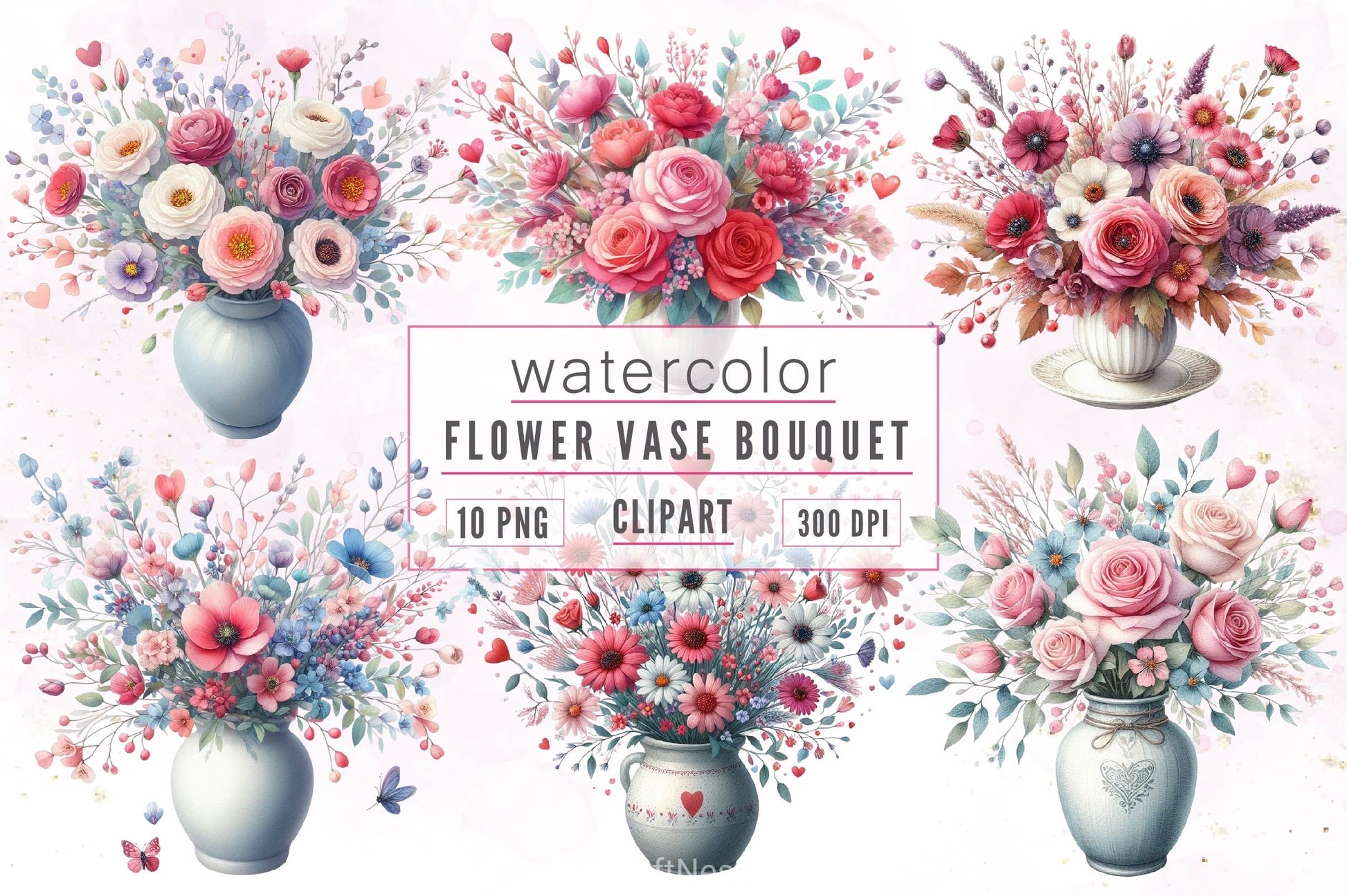 Beautiful flower arrangements in vases for garden and home projects.