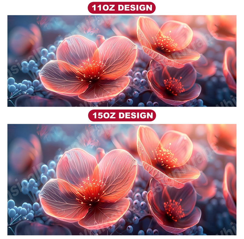 Delight in the playful charm of Flower Whimsical digital mug wraps, featuring whimsical floral illustrations that bring a sense of joy to your morning routine. Sip from these delightful wraps and let the whimsical blooms brighten your day, making each sip a moment of cheerful indulgence. Experience the magic of whimsical flowers in every cup, adding a dash of happiness to your tea or coffee time.