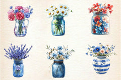 Patriotic with this Flowers In Jar 4th Of July Clipart Bundle, featuring American flower container designs, perfect for patriotic garden crafts.