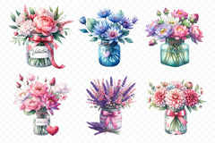 Contain with this Flowers In Jar Clipart Bundle, featuring floral container designs, perfect for garden display crafts.