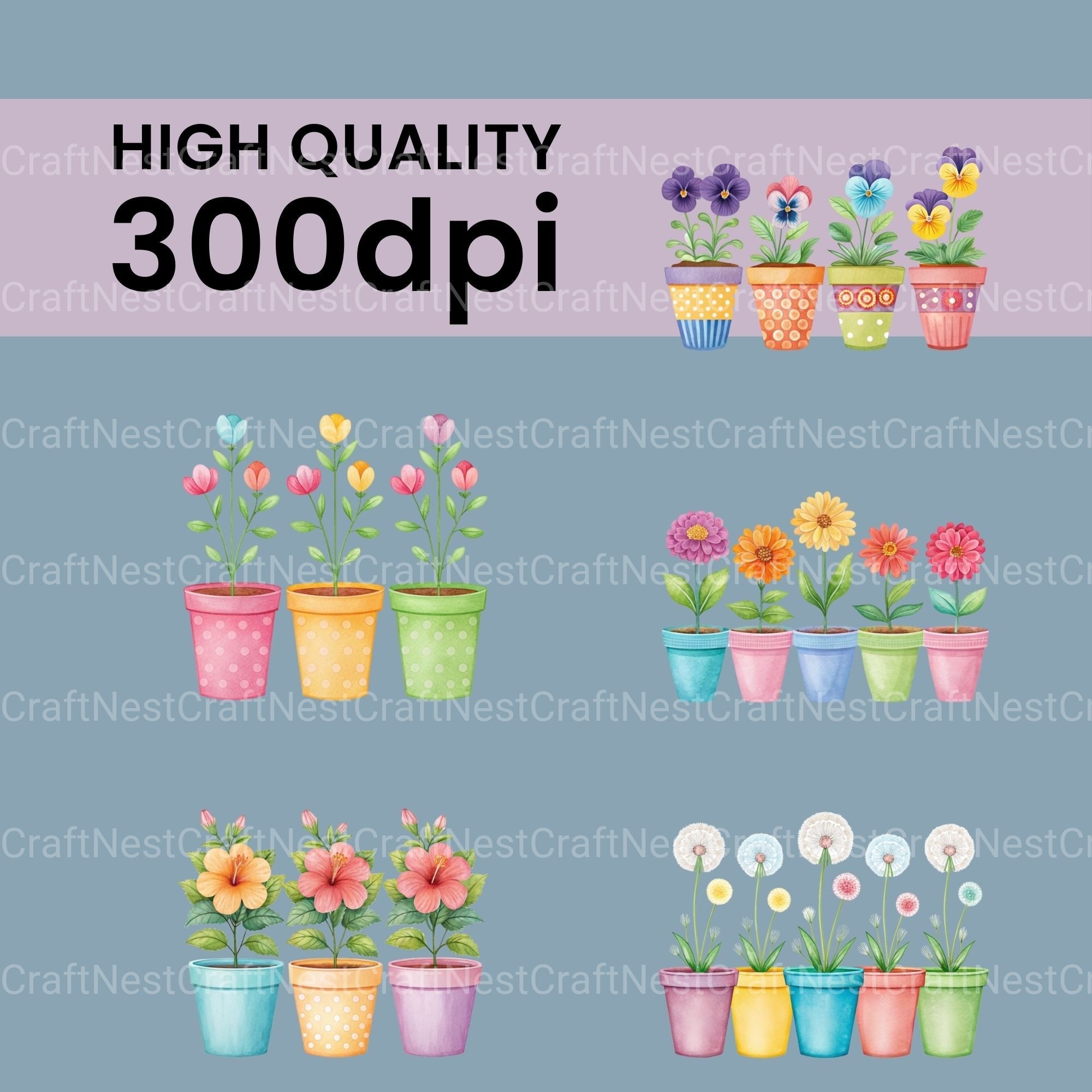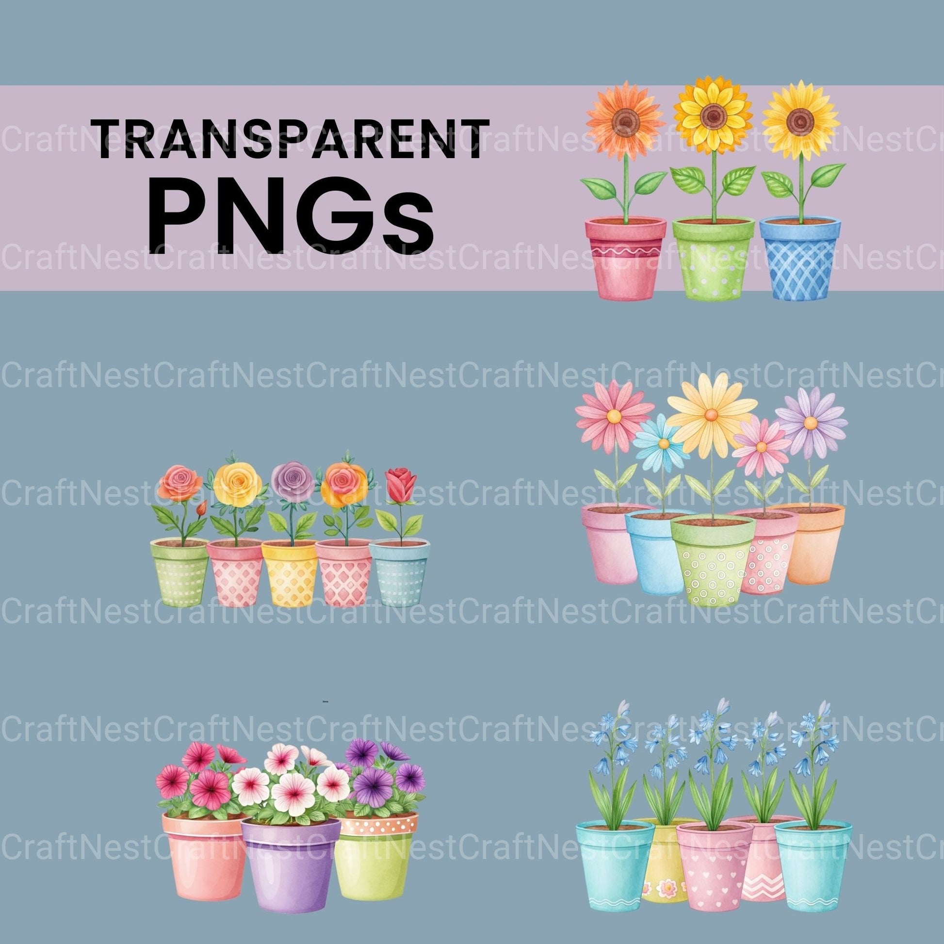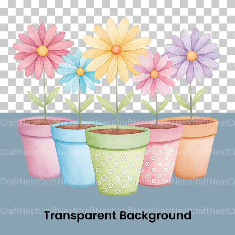 Flowers In Pots Clipart Bundle