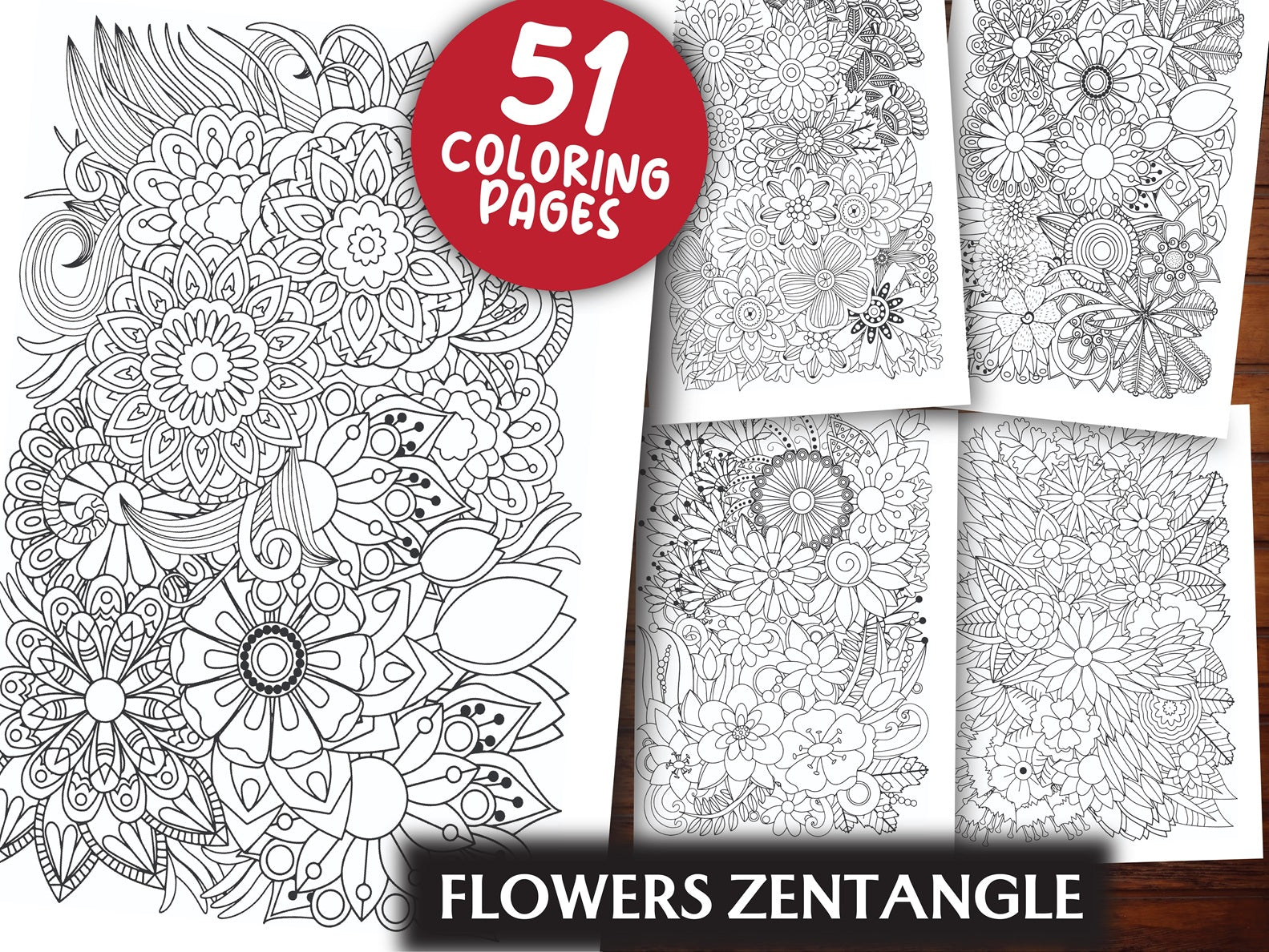 Flowers Zentangle Coloring Book