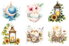 Glow with this Flowery Candles Clipart Bundle, featuring floral candle designs, perfect for decor crafts.