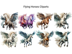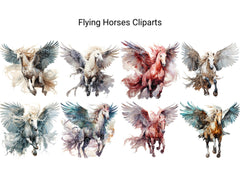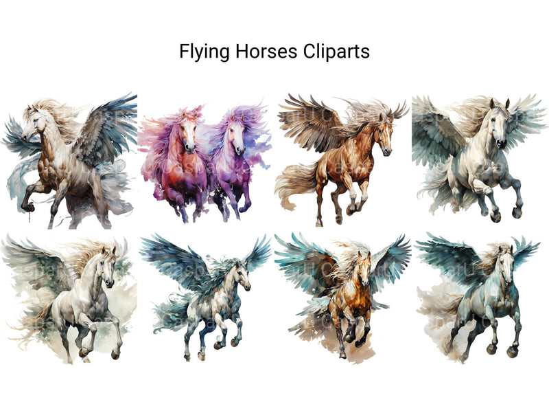 Soar through the skies with our Flying Horses clip art. These enchanting digital illustrations feature horses taking flight with wings spread wide, against a backdrop of clouds and celestial wonders, perfect for adding a touch of mythical wonder and airborne grace to your designs, whether for fantasy artwork, celestial-themed creations, or magical adventures, inspiring viewers to reach for the stars alongside these majestic winged steeds.