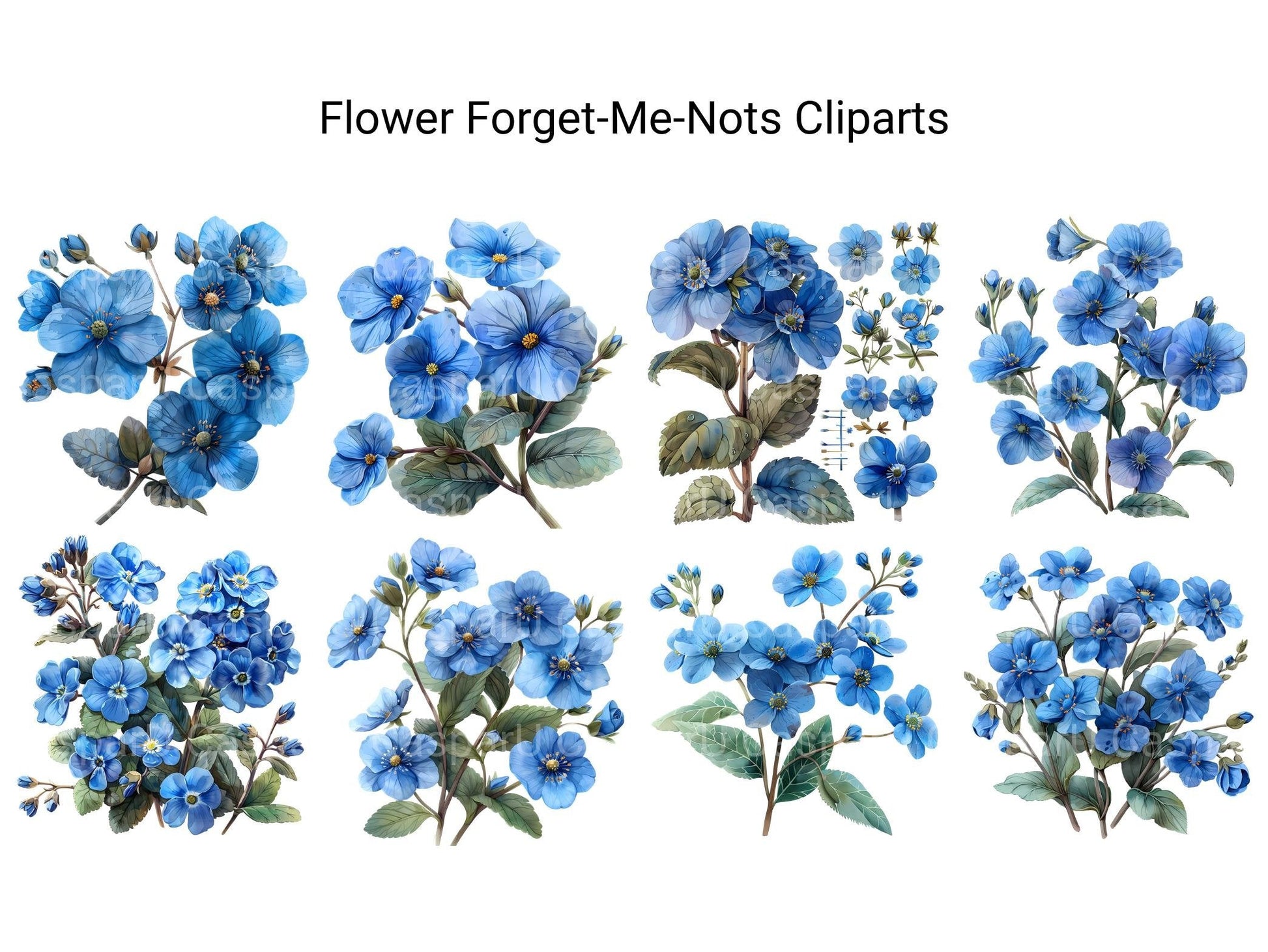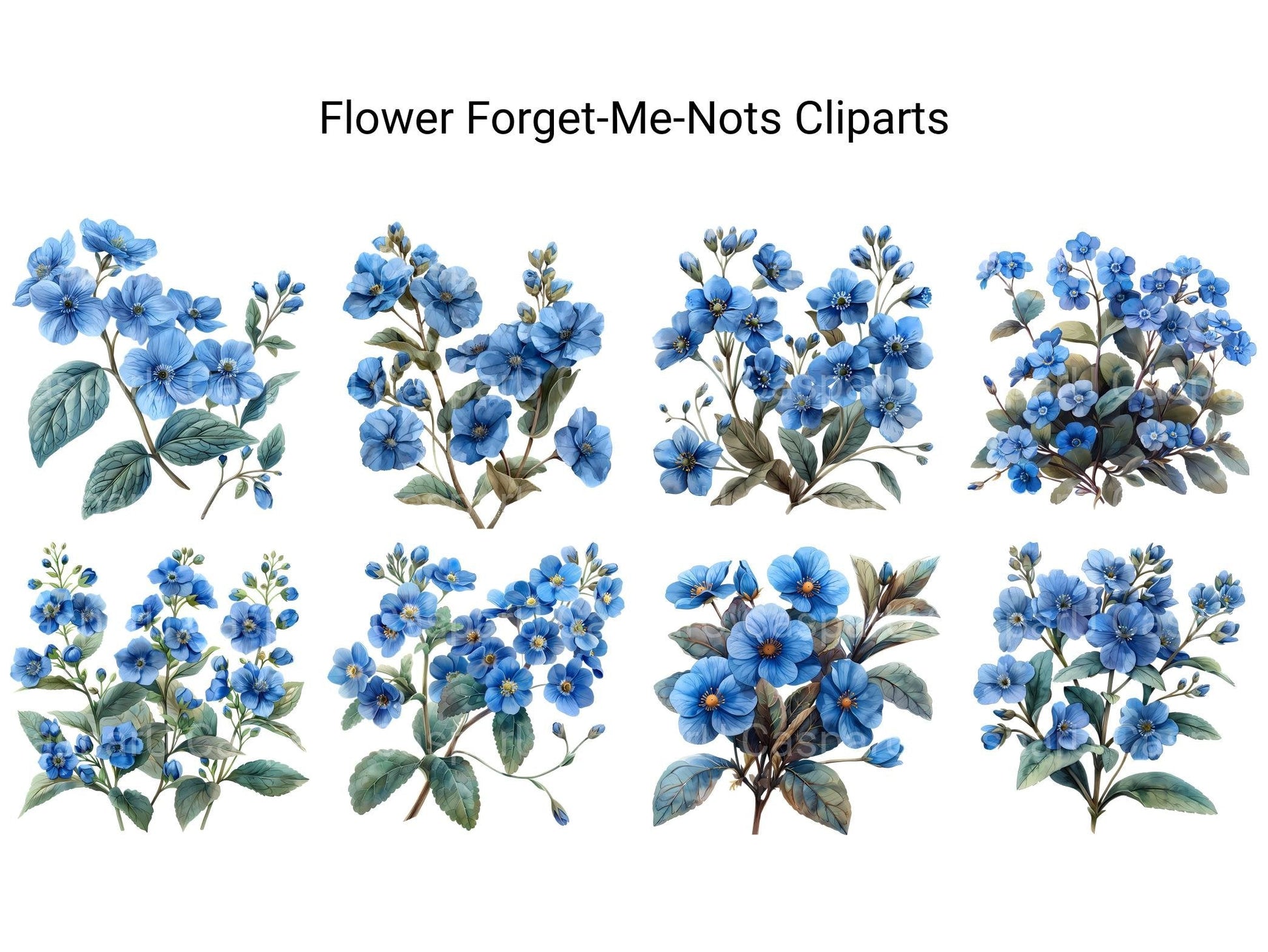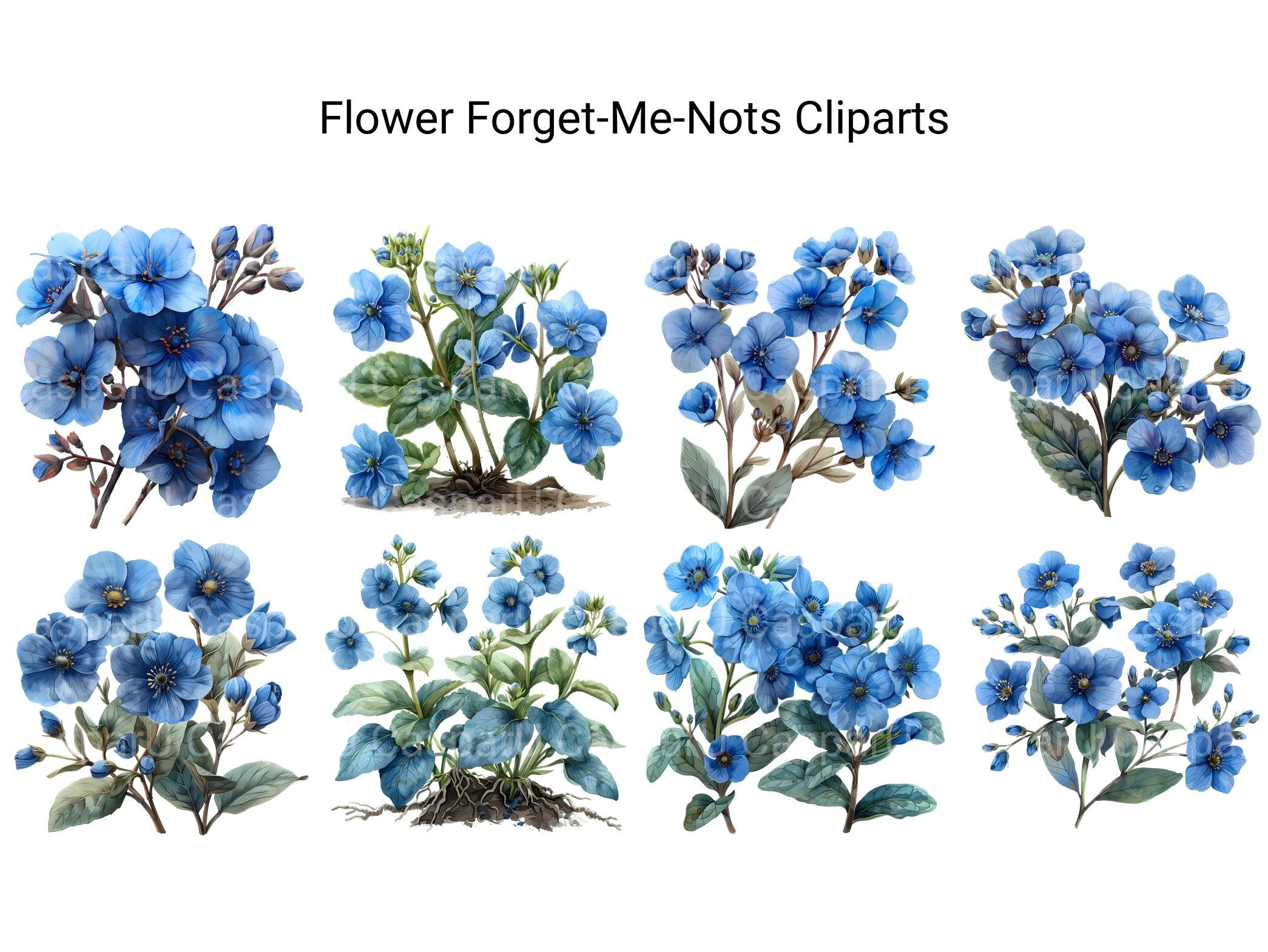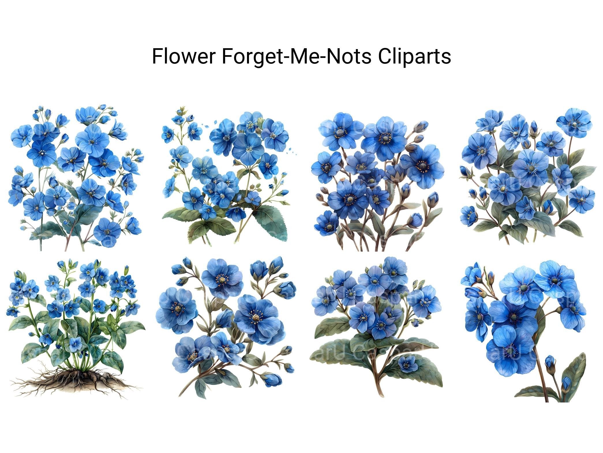Dive into the delicate beauty of forget-me-nots with our digital clip art collection. These charming clip arts capture the whimsical allure and dainty petals of forget-me-not flowers, perfect for adding a touch of nostalgia to your digital designs, cards, and crafts. Whether you're creating invitations or embellishing your artwork, these forget-me-not clip arts will evoke sweet memories and timeless elegance.