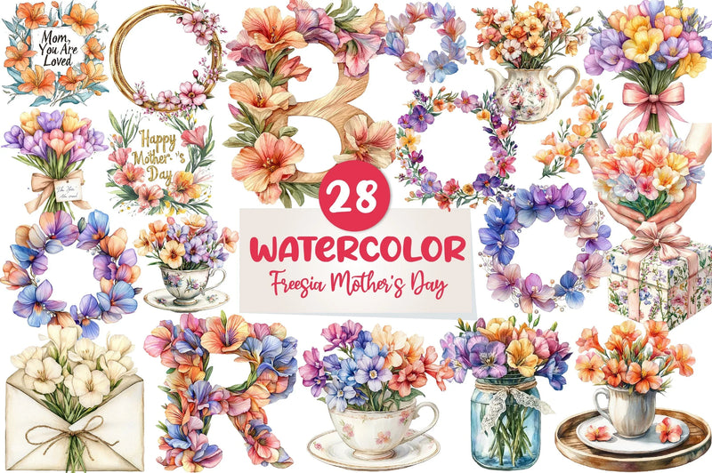 Celebrate Mother's Day with our Freesia Clipart Bundle, featuring elegant floral designs perfect for heartfelt cards, personalized gifts, and creative projects. Ideal for crafters and designers seeking unique, high-quality illustrations.