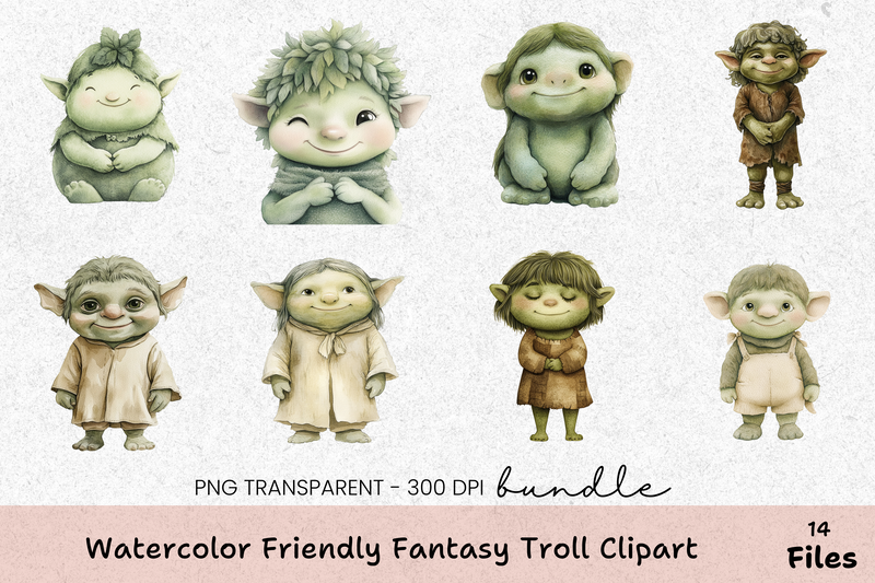 Explore the magic of the Friendly Fantasy Troll Clipart Bundle, offering charming troll characters to enhance your artistic endeavors.