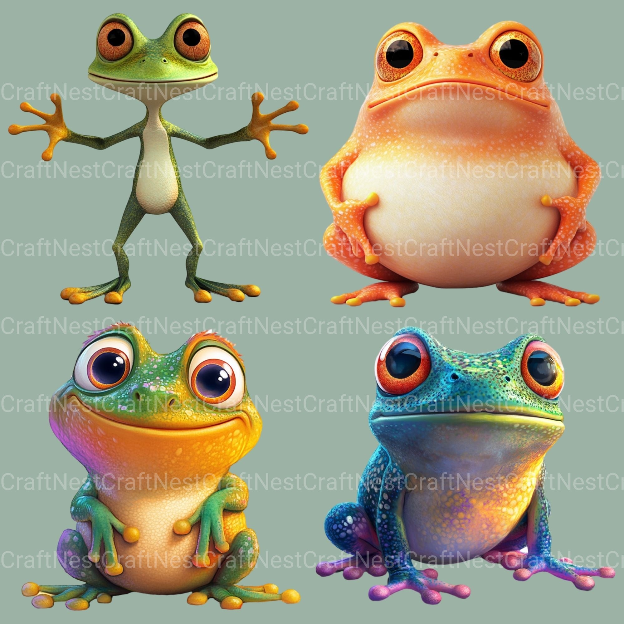 Leap with this Frogs 12 Clipart Bundle, featuring charming frog designs, ideal for amphibian animal crafts.