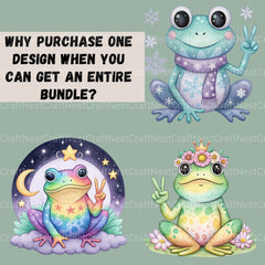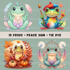 Peace with this Frogs Peace Sign 15 Clipart Bundle, featuring hippie peace frog designs, ideal for boho animal crafts.