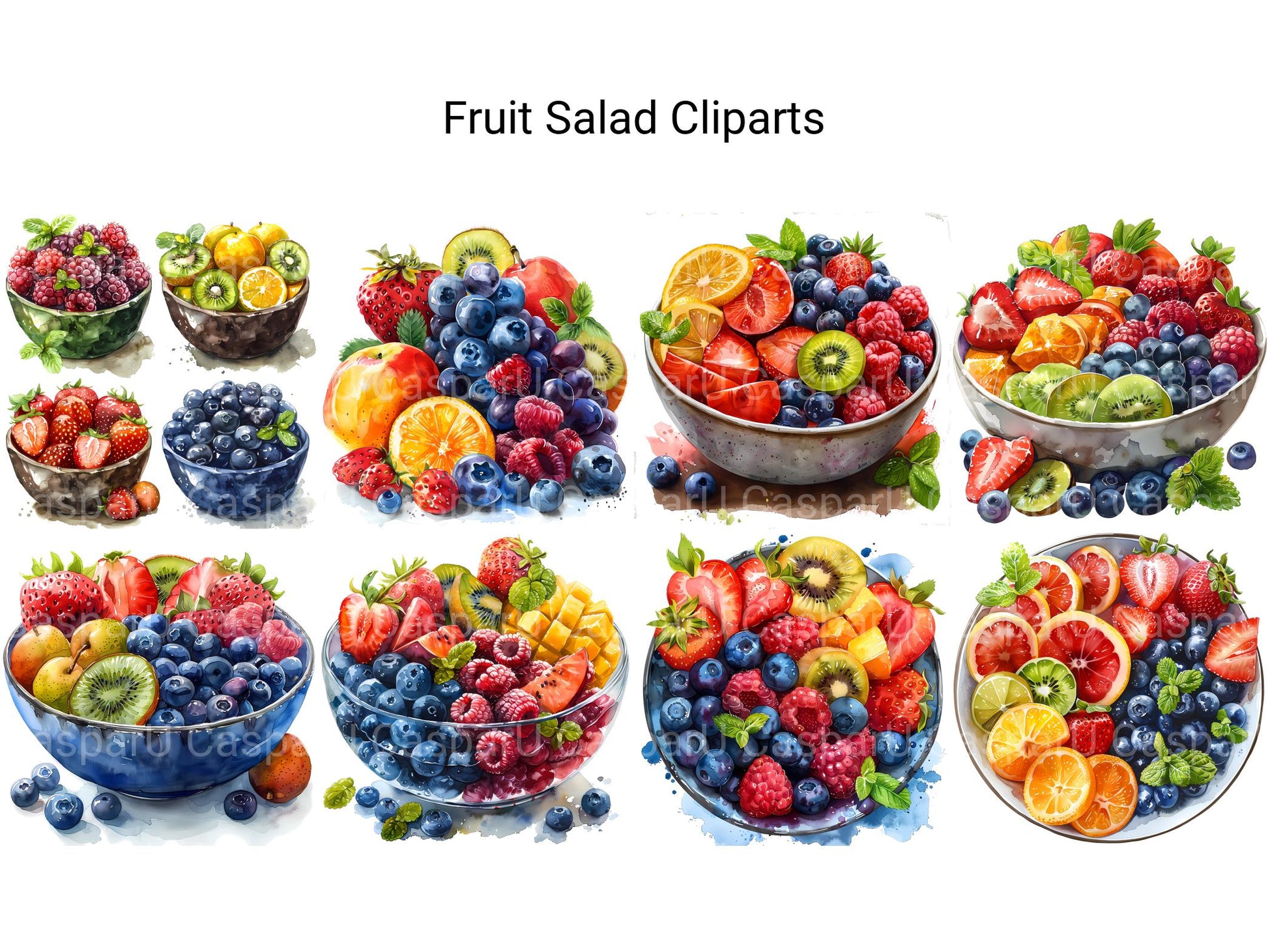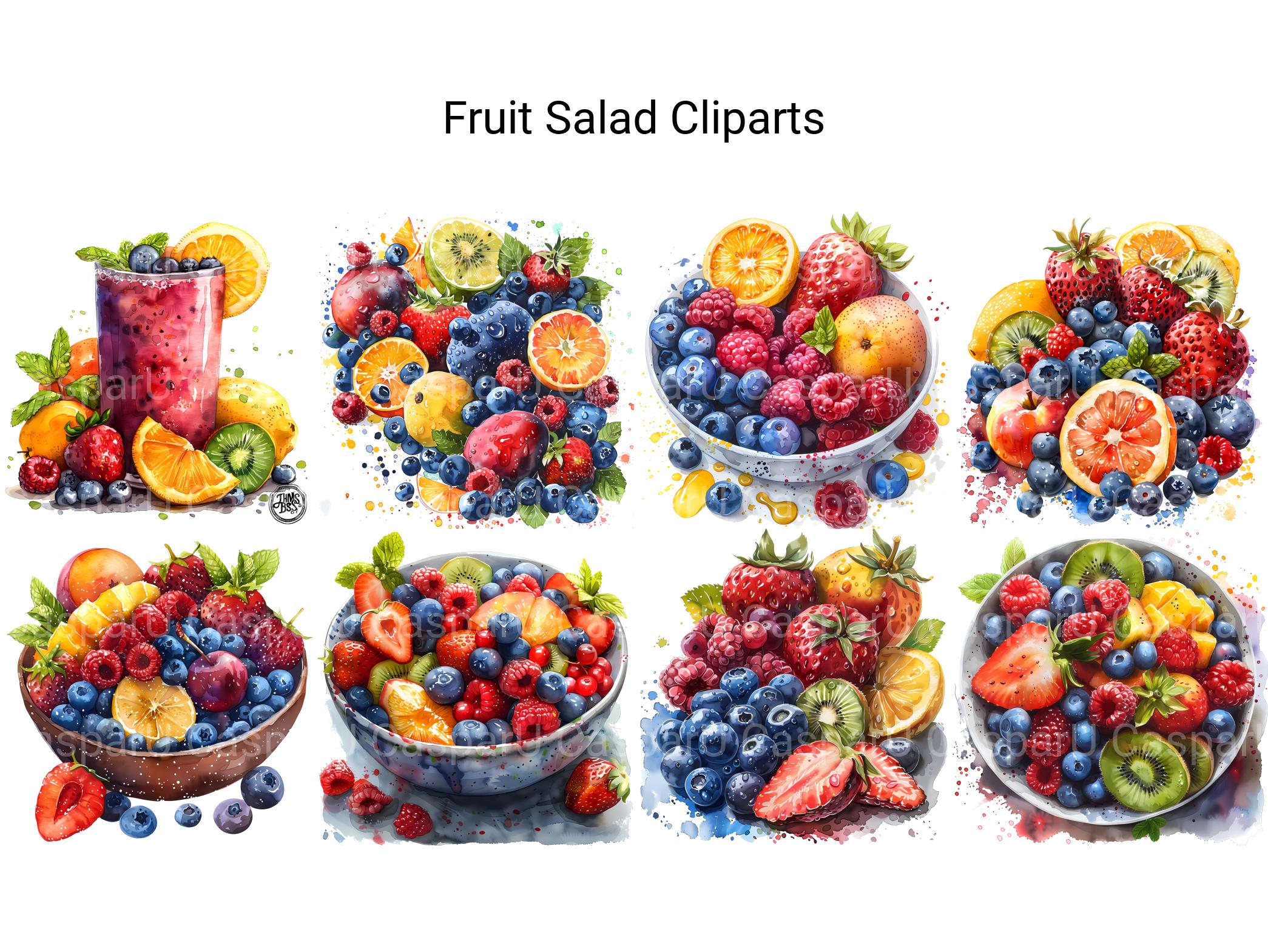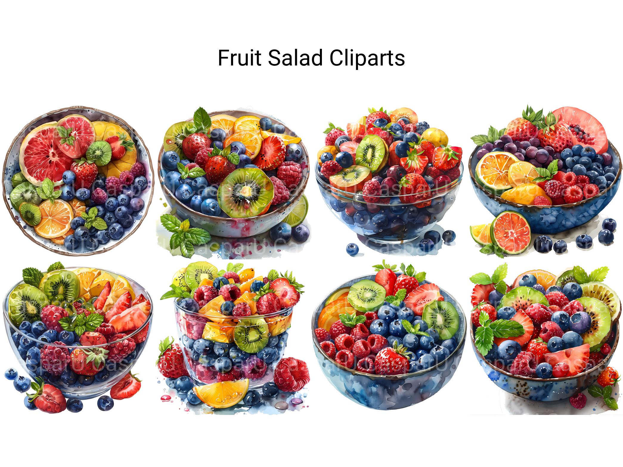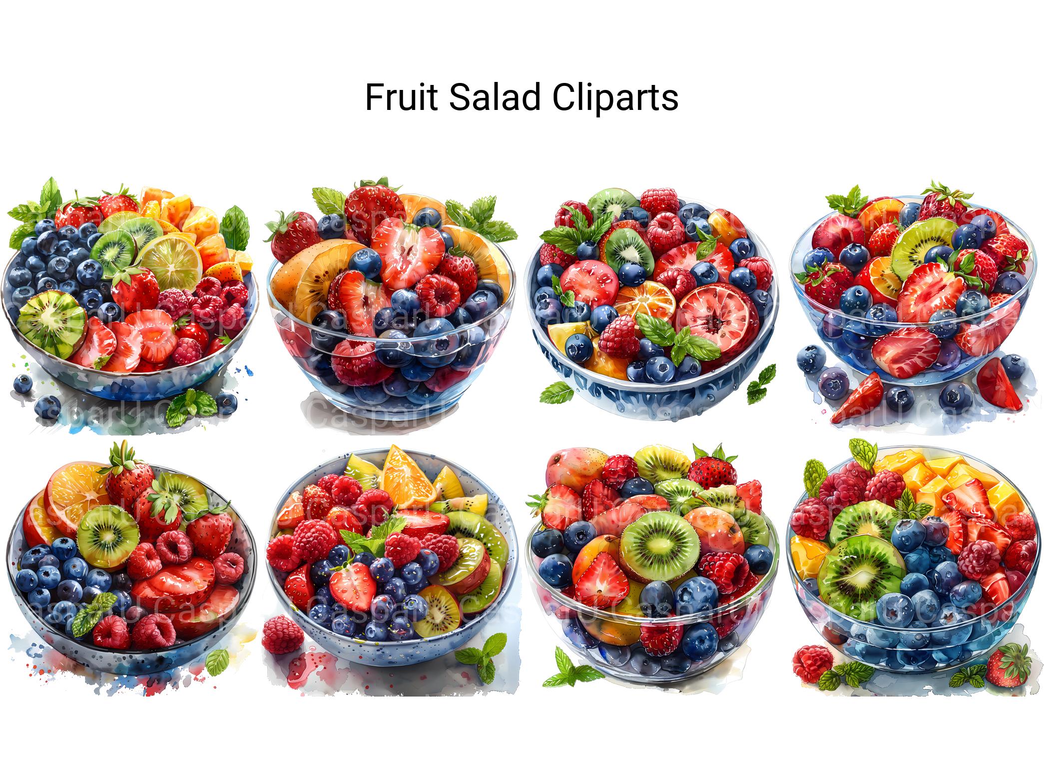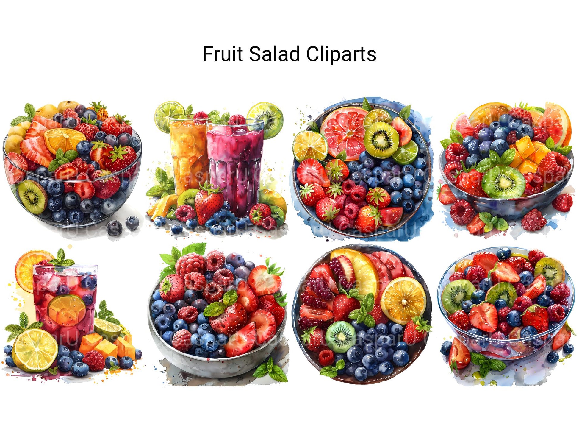 Add a splash of fruity freshness with our Fruit Salad clipart. Featuring a delightful mix of colorful fruits, this set captures the essence of a refreshing fruit salad, making it perfect for food-themed or vibrant, cheerful designs.