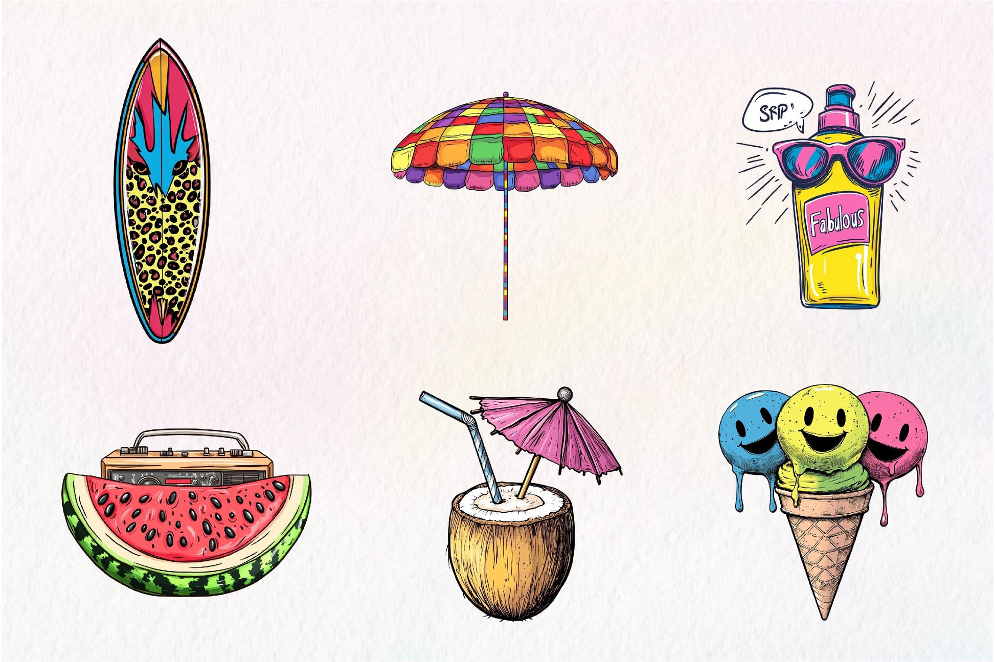 Groove with this Funky Summer Clipart Bundle, featuring quirky seasonal designs, perfect for retro summer crafts.