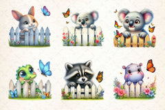 Funny Animal On Fence Clipart Bundle