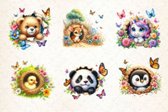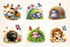 Peek with this Funny Animals Hole Clipart Bundle, featuring playful creature designs, perfect for sneaky animal crafts.