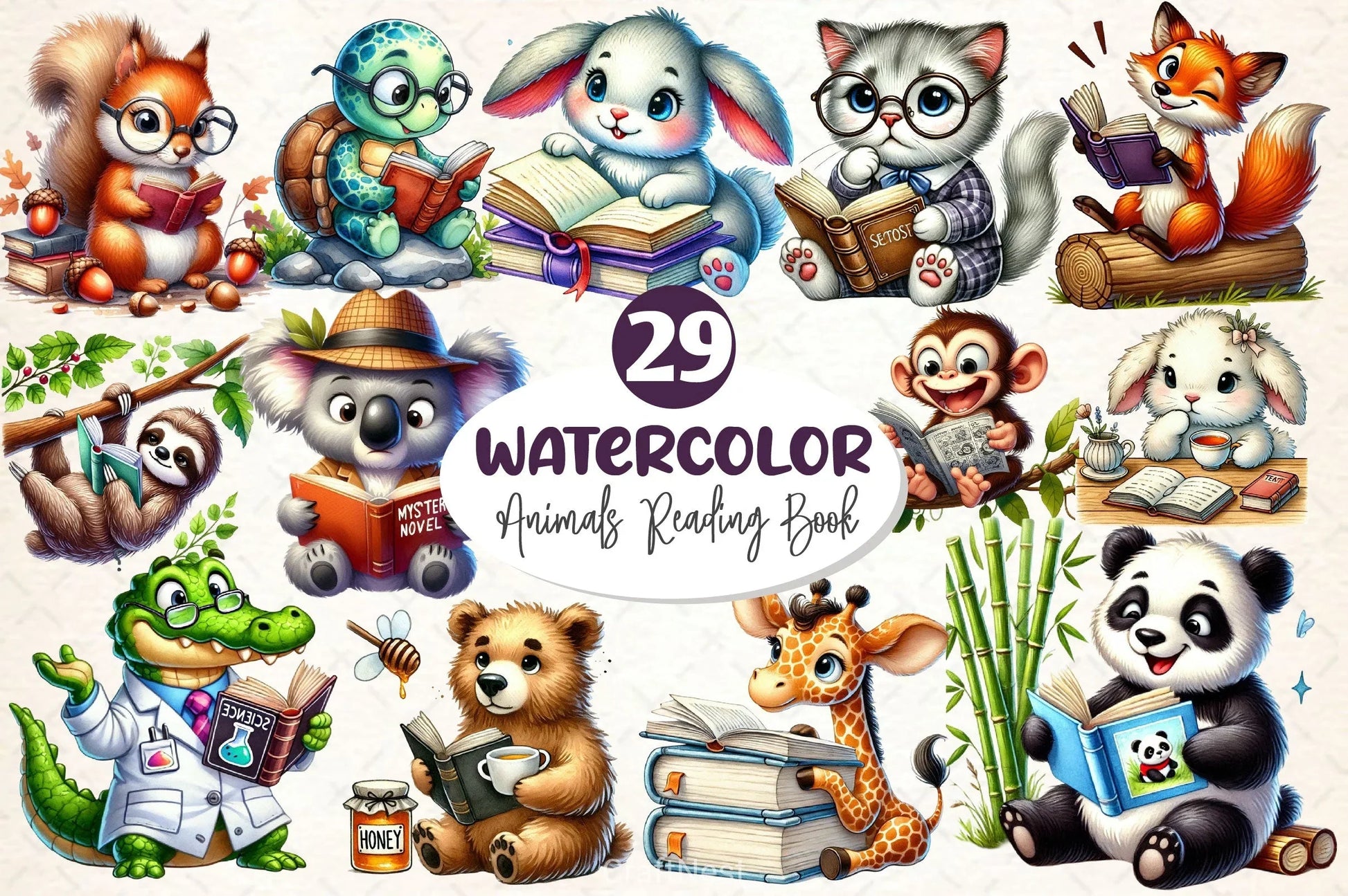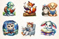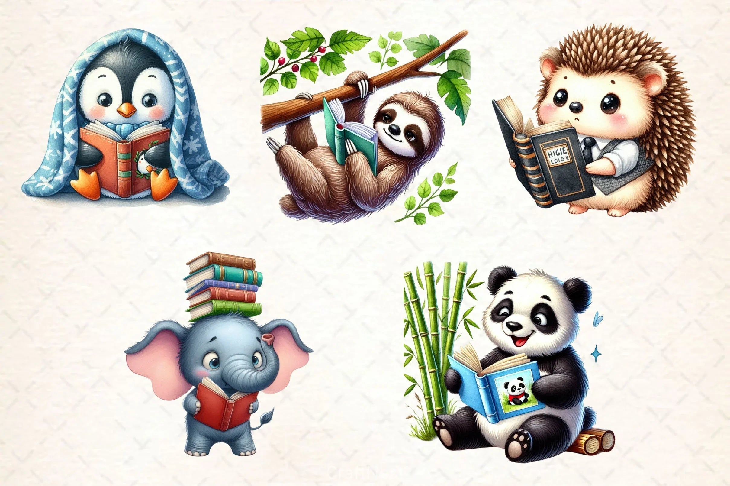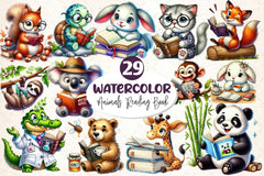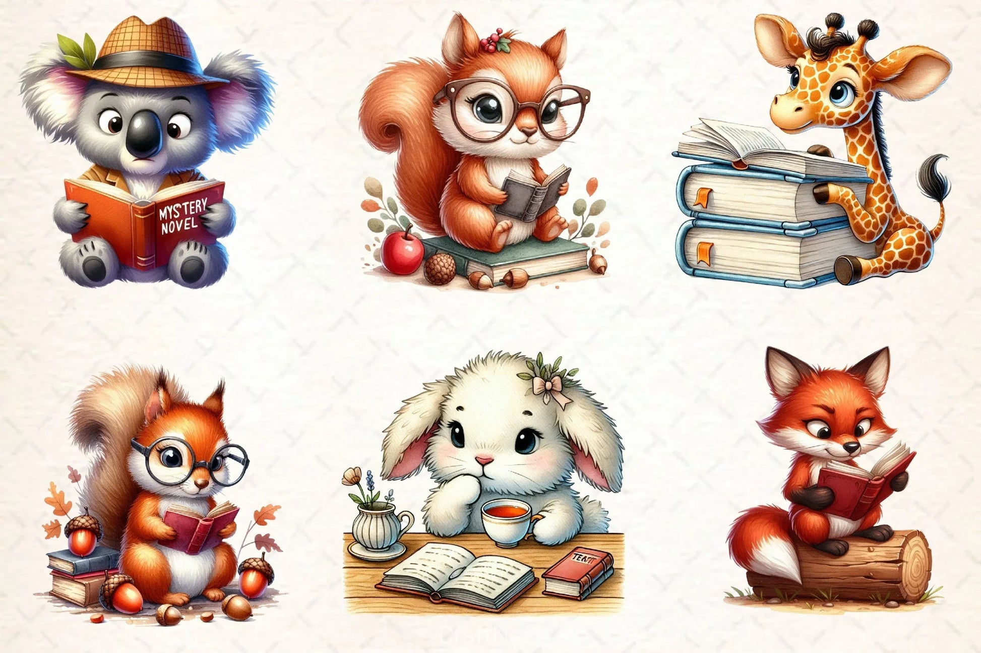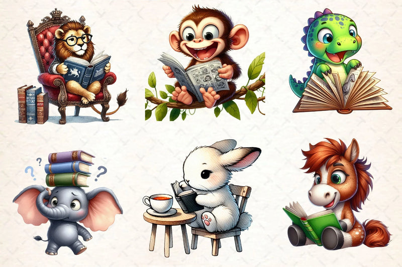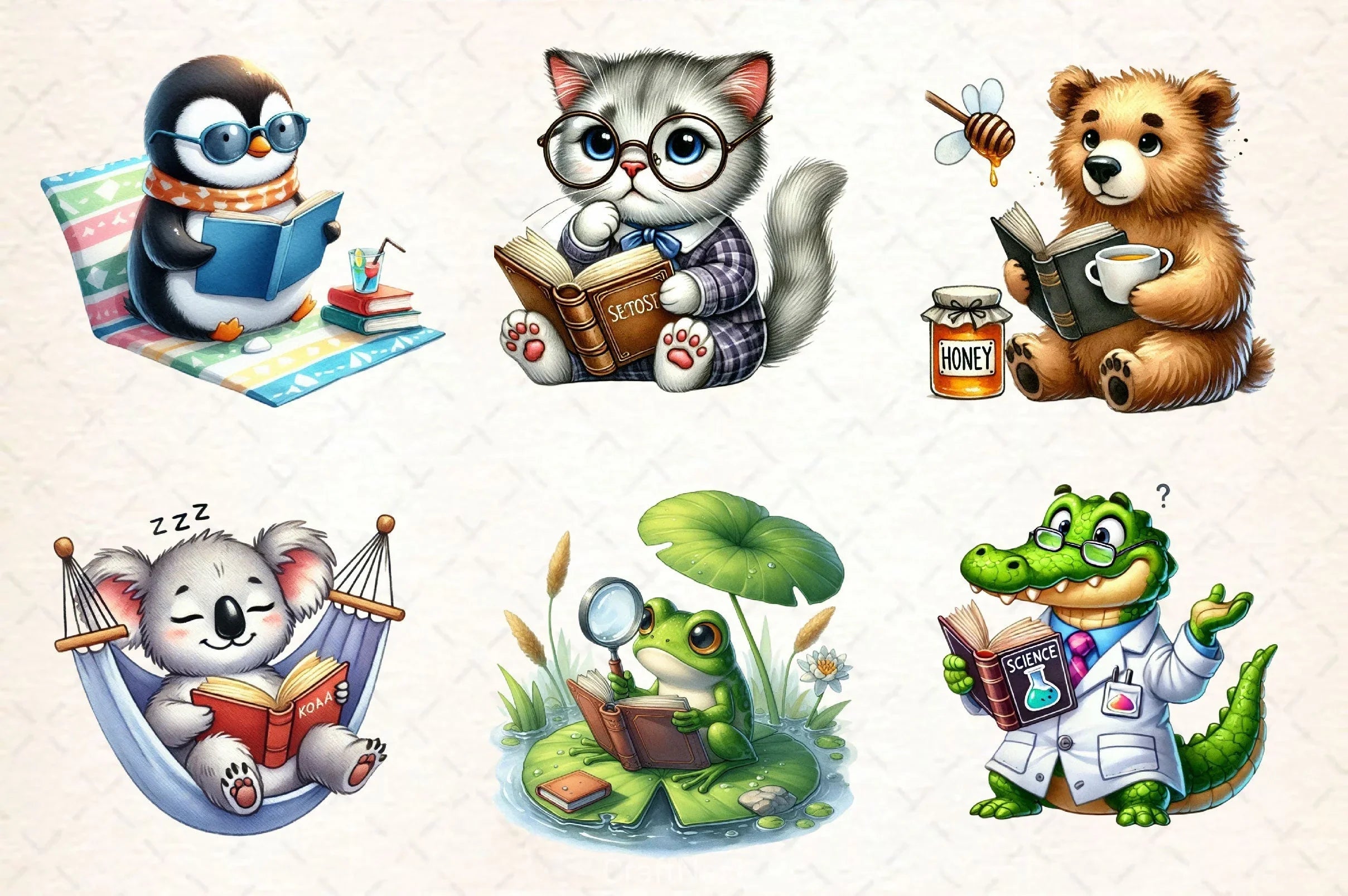 Discover the charm of our Funny Animals Reading Book Clipart Bundle, featuring whimsical animal designs perfect for educational projects, children's books, and creative classroom decor.