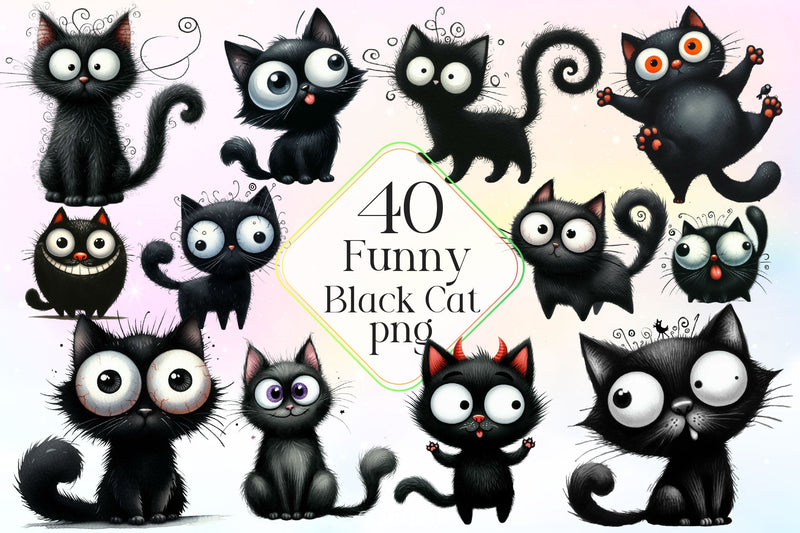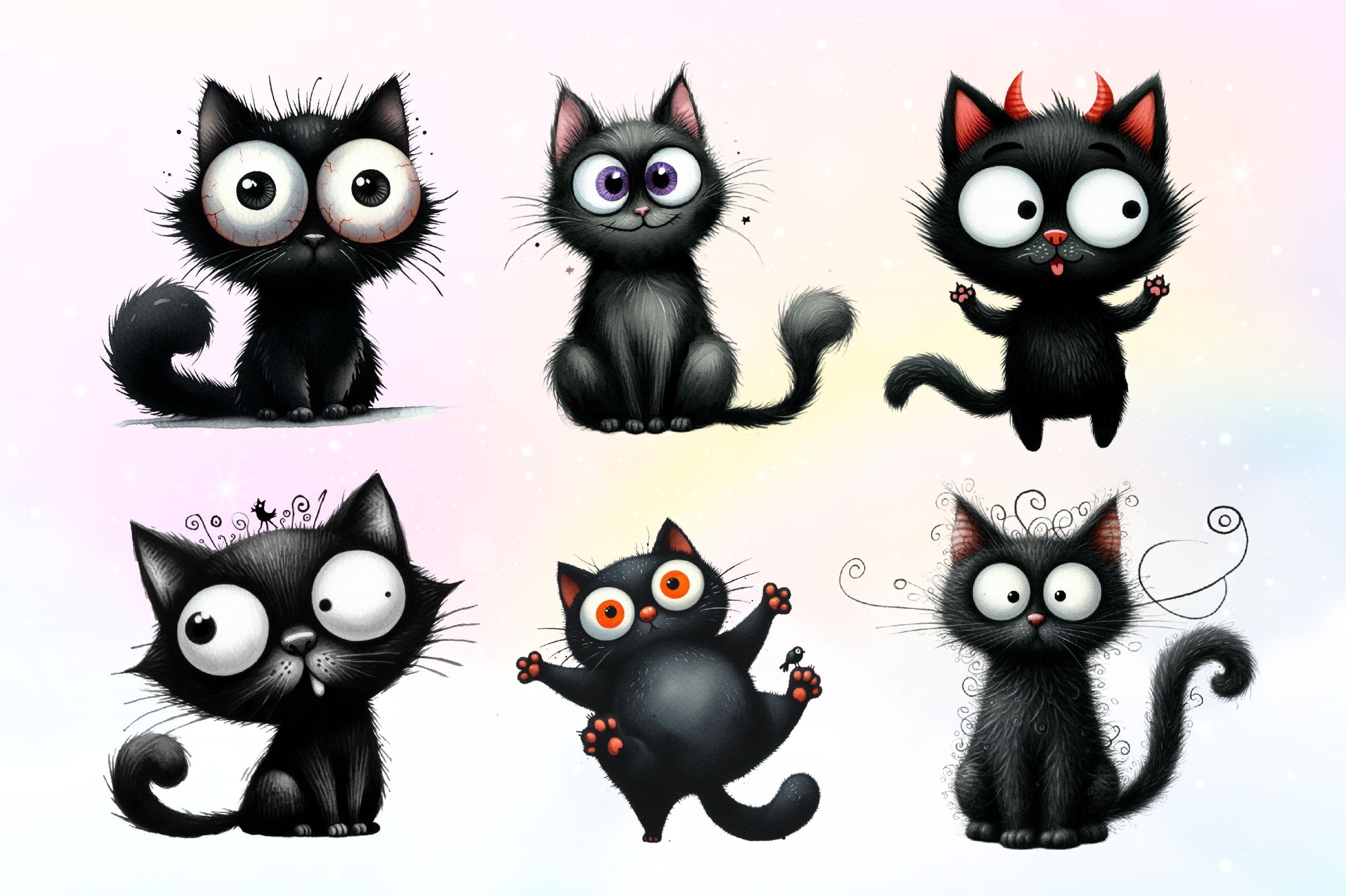 Amusing black cat characters bringing humor to Halloween pet projects.