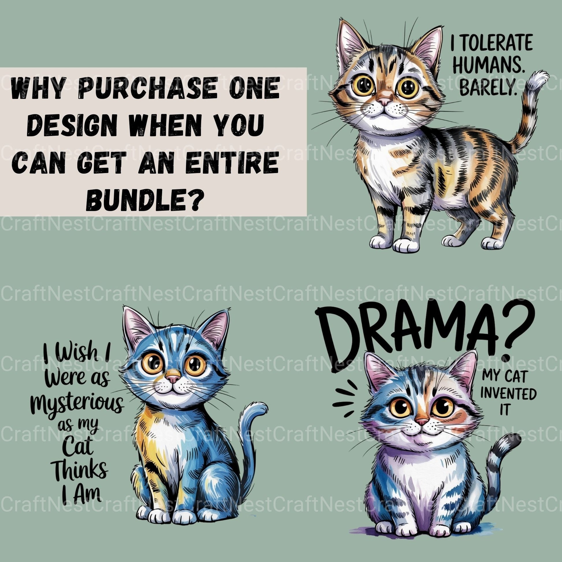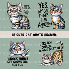 Meow with this Funny Cat Quotes 15 Clipart Bundle, featuring funny cat saying designs, perfect for cat quote crafts.
