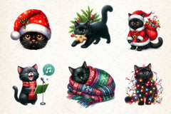 Funny Christmas Black Cat Clipart Bundle 4