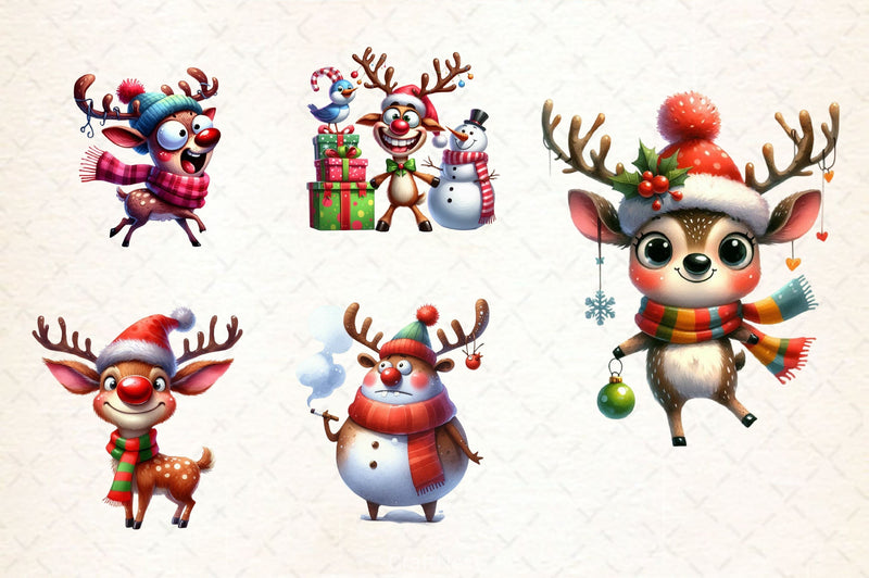 Amusing Christmas deer characters for humorous holiday animal projects.
