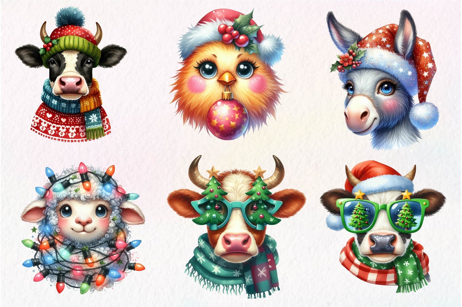 Laugh with this Funny Christmas Farm Animal Face Clipart Bundle, featuring humorous agricultural designs, perfect for comedy farming crafts.