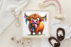 Moo with this Funny Christmas Highland Cow Clipart Bundle, featuring humorous holiday bovine designs, perfect for farm Christmas crafts.