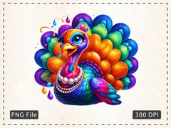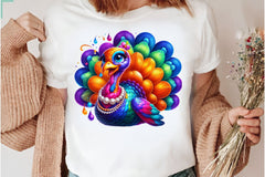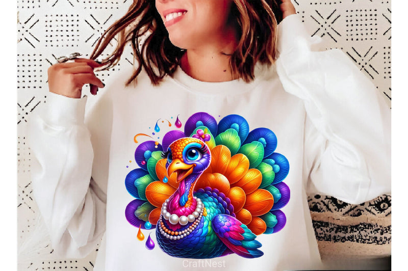 Funny Colorful Coquette Turkey Clipart Bundle 1