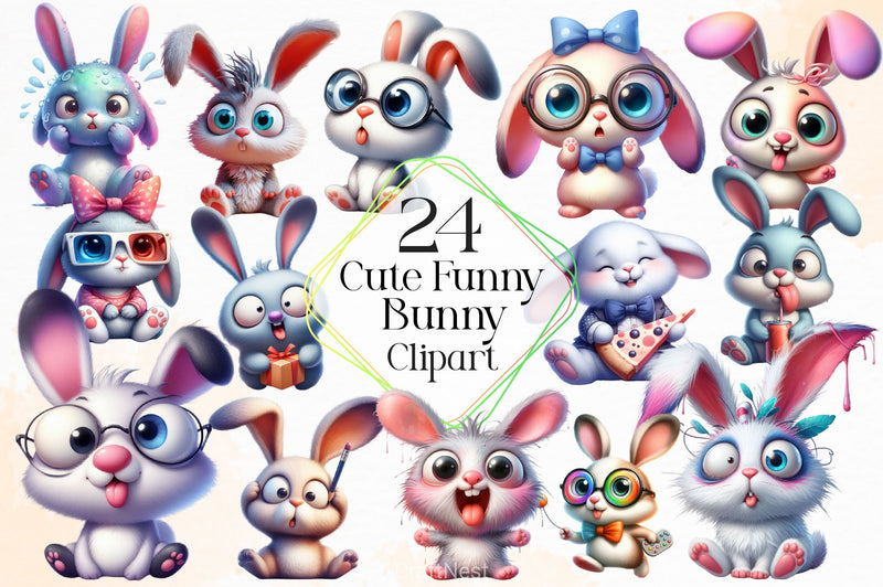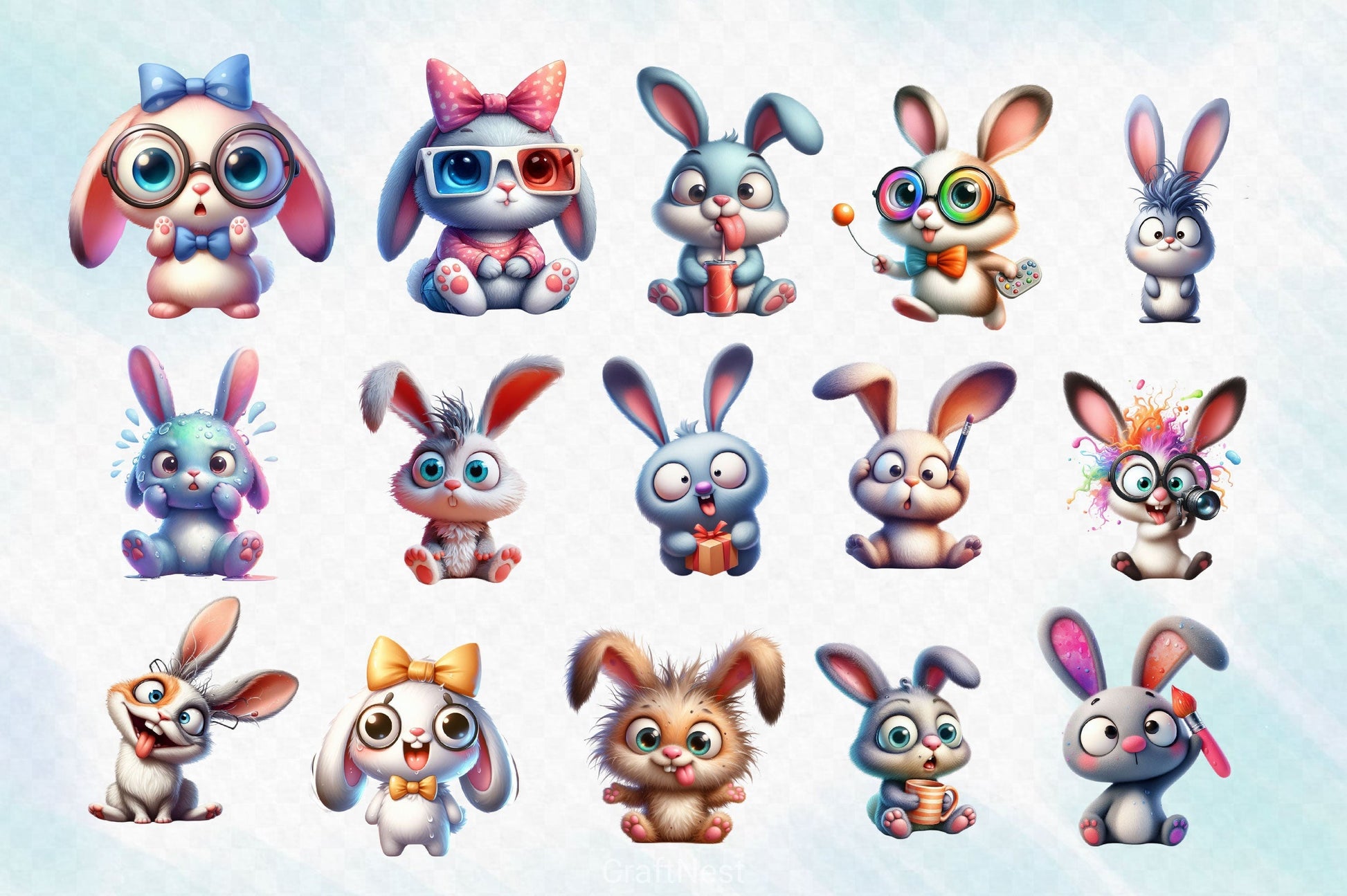 Hop with this Funny Cute Bunny Clipart Bundle, featuring humorous rabbit designs, perfect for comedy Easter crafts.