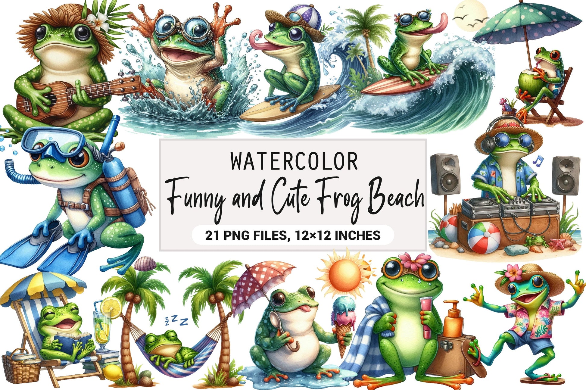 Hop into creativity with our Funny Cute Frog Beach Clipart Bundle! Perfect for summer-themed projects, this delightful collection features charming frog illustrations, ideal for scrapbooking, invitations, and more. Dive into a world of fun with these vibrant designs, perfect for adding a splash of whimsy to your crafts. Whether you're designing party decor or creating unique gifts, these adorable frog cliparts are sure to make a splash. Unleash your imagination and bring a touch of froggy fun to your next project!